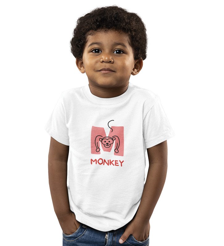 Monkey Love, Boys Cotton Text Print Tshirt (White)