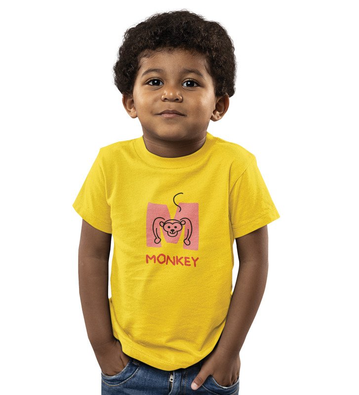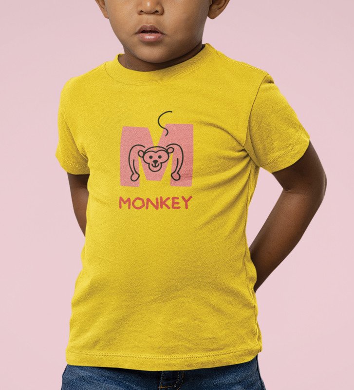 Monkey Love, Boys Cotton Text Print Tshirt (Yellow)