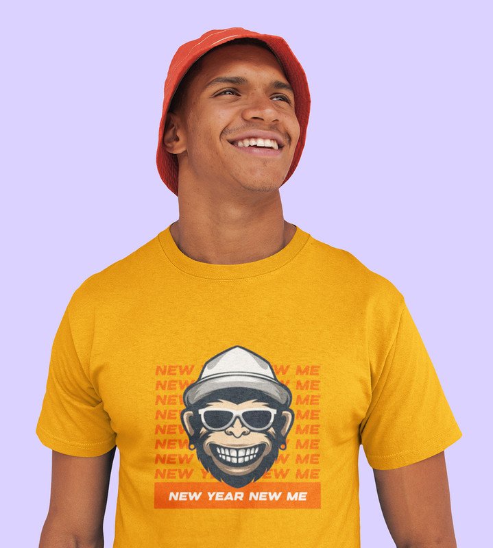 Monkey's New Year Yellow New Year Printed T-shirt For Mens