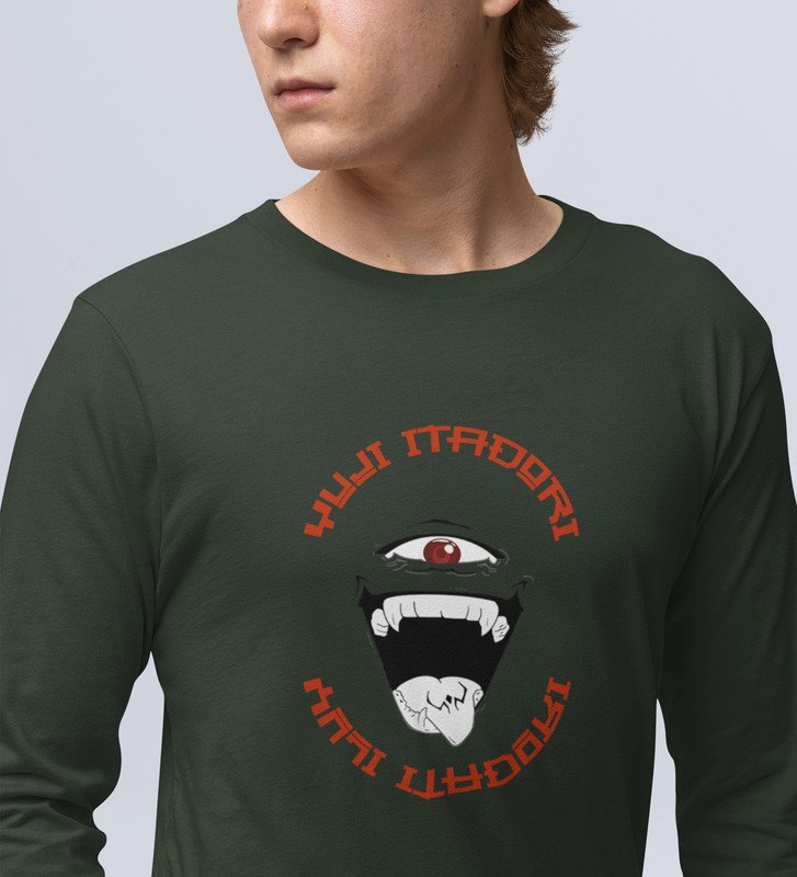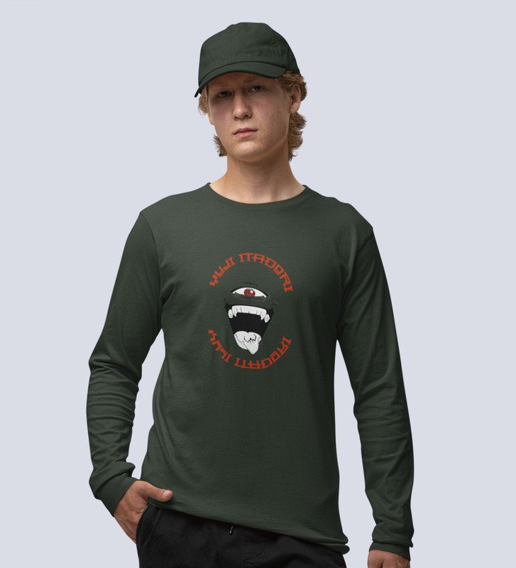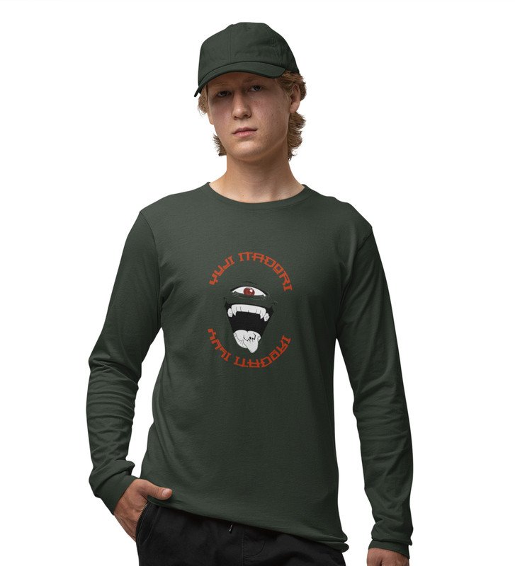 Monster Itadori, Printed Cotton Green Full Sleeves Tshirt For Mens and Boys