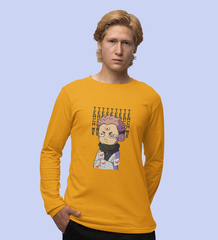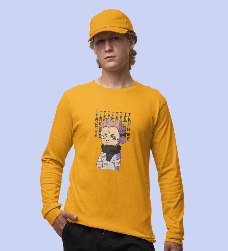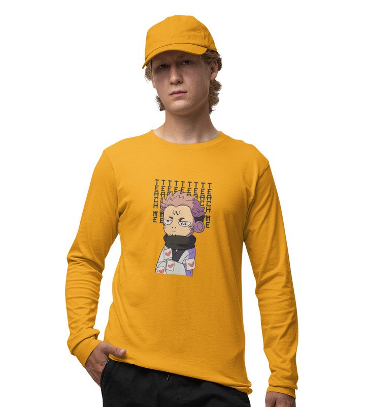 Monster Itadori, Printed Cotton Yellow Full Sleeves Tshirt For Mens and Boys