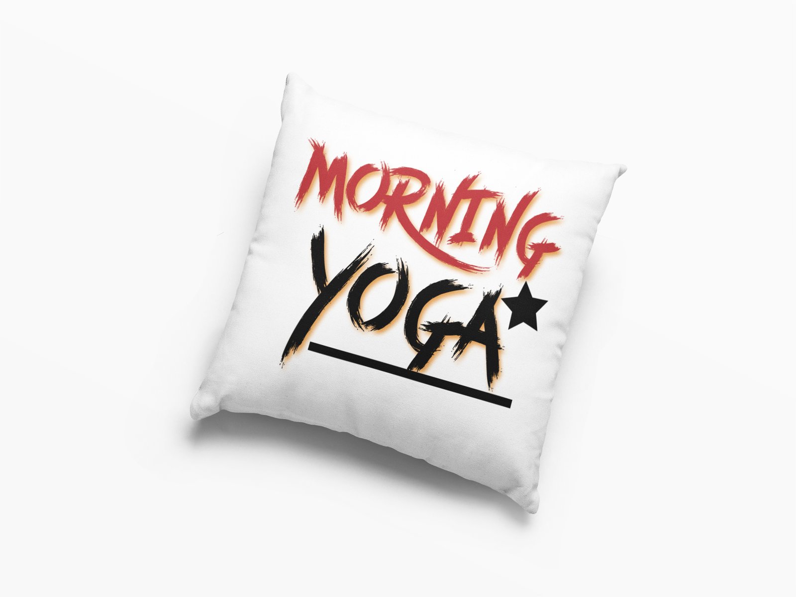 Morning Yoga Text In Red &Black -Printed Pillow Covers(Pack Of 2)