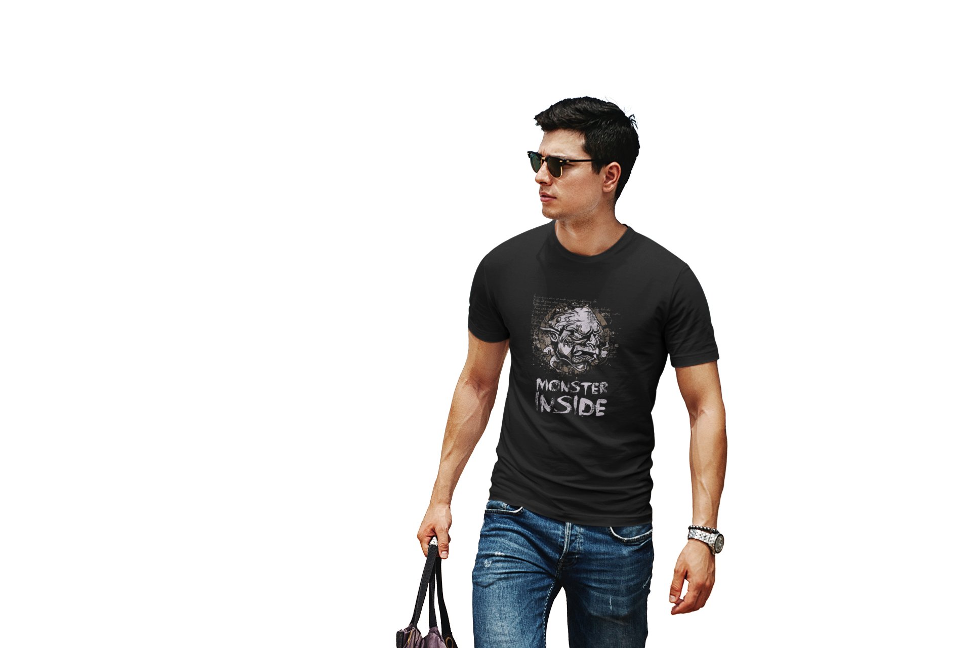 Monster inside printed black T-shirts - Men's stylish clothing - Cool tees for boys