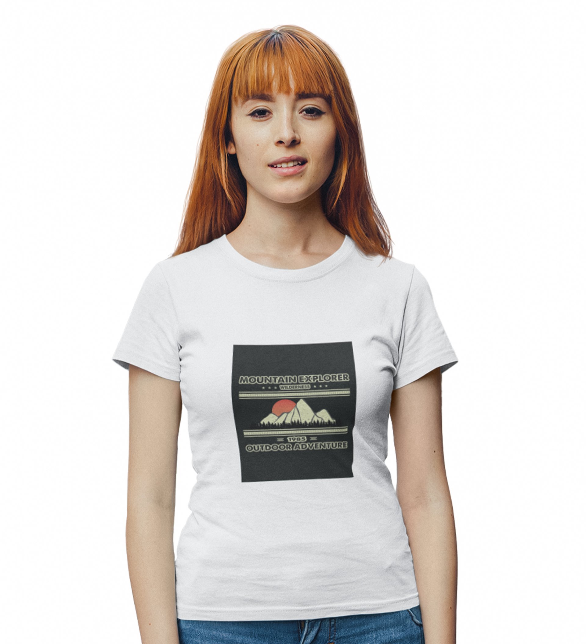 Mountain Explorer White Round Neck Cotton Half Sleeved Women's T-Shirt with Printed Graphics
