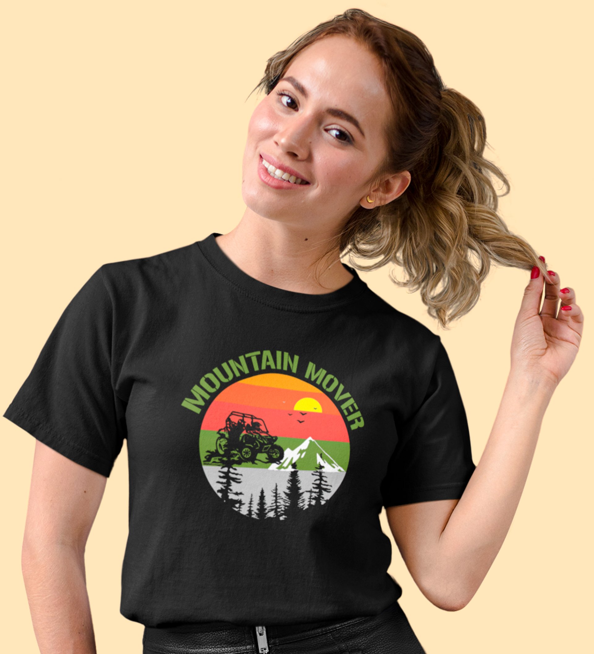 HopOfferMountain Mover Black Round Neck Cotton Half Sleeved Women's T-Shirt with Printed Graphics