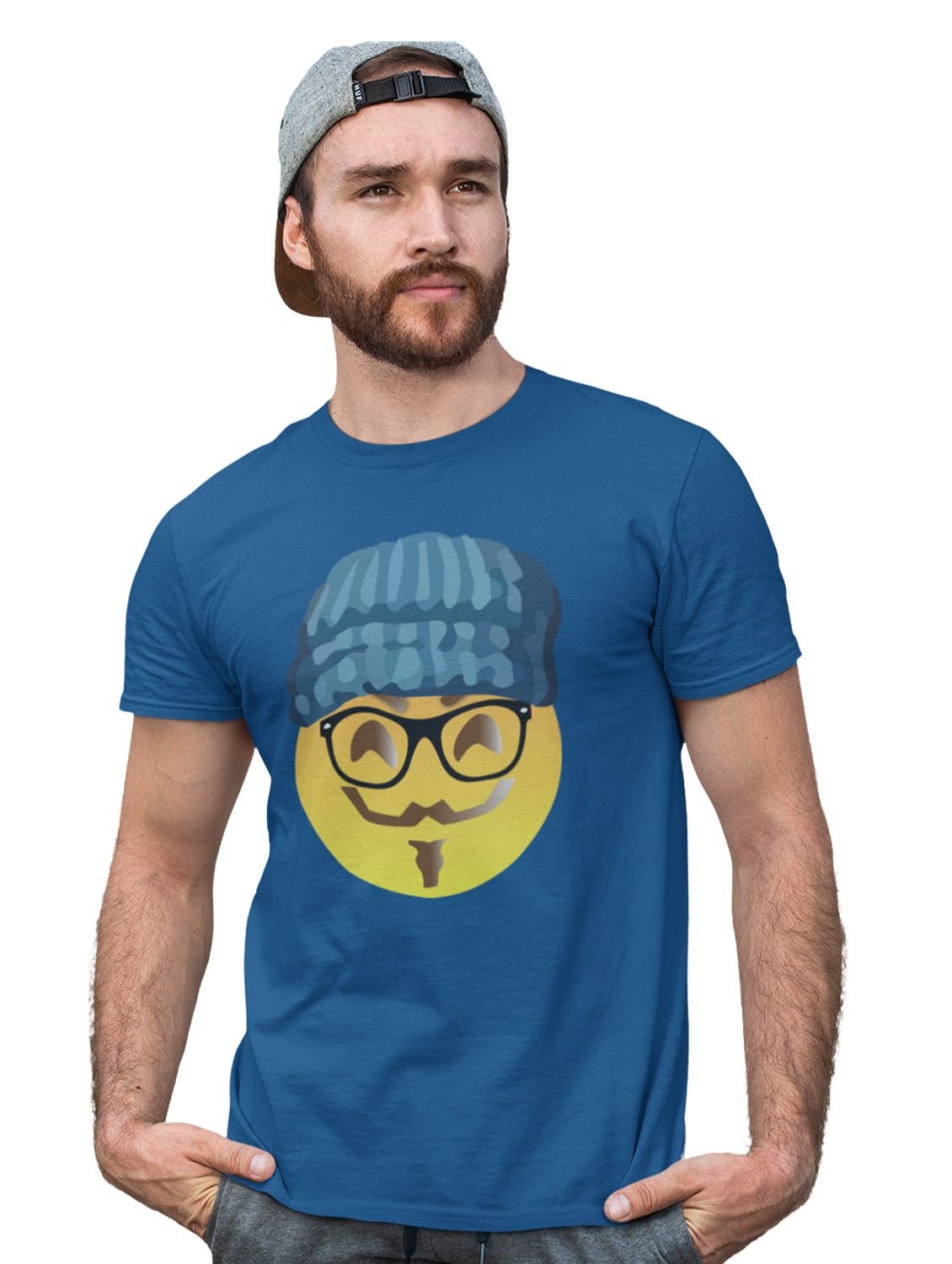 Moustaque Face Emoji T-shirt (Blue) - Clothes for Emoji Lovers - Suitable for Fun Events - Foremost Gifting Material for Your Friends and Close Ones