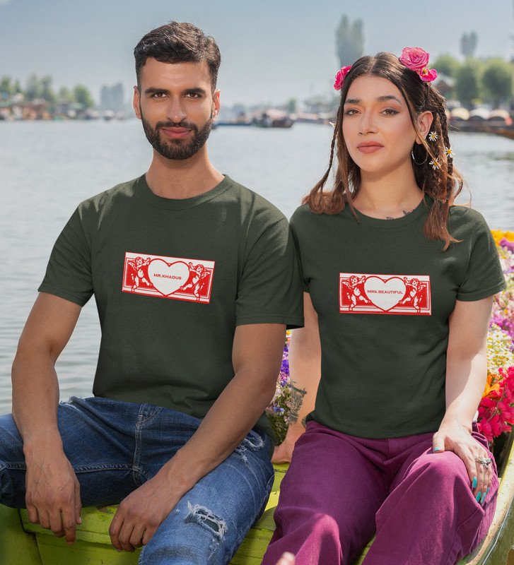 Mr Khadoos/Mrs Beautiful Printed (green) T-shirts For Couples