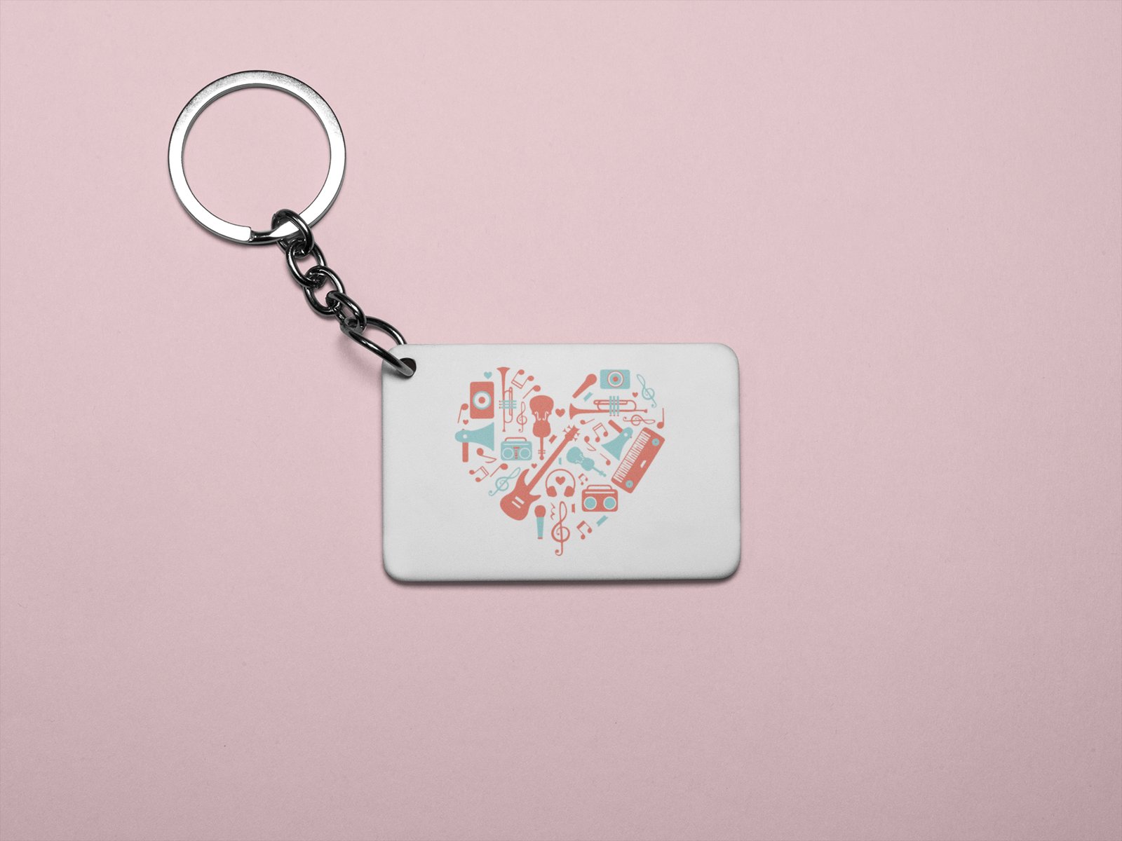 Musical instrument (Red ) Printed In Heart--White -Designable Musicllnstrument Keychain ( Combo Set Of 2)