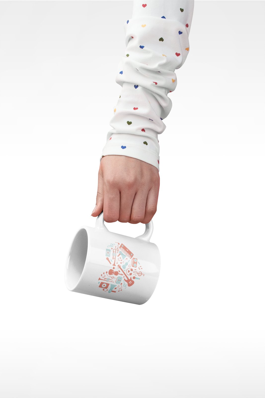 Musical instrument(Red) Printed In Heart- music themed printed ceramic white coffee and tea mugs/ cups for music lovers