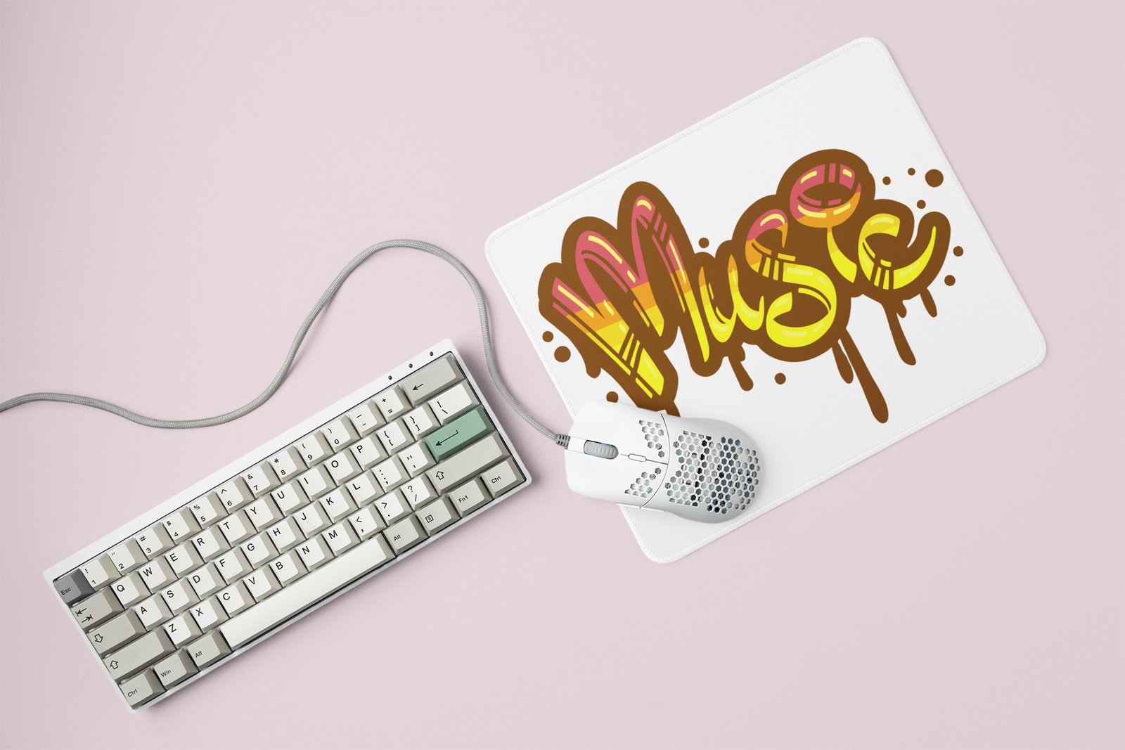 Music ( Yellow text ) Printed Mousepads For Music Lovers