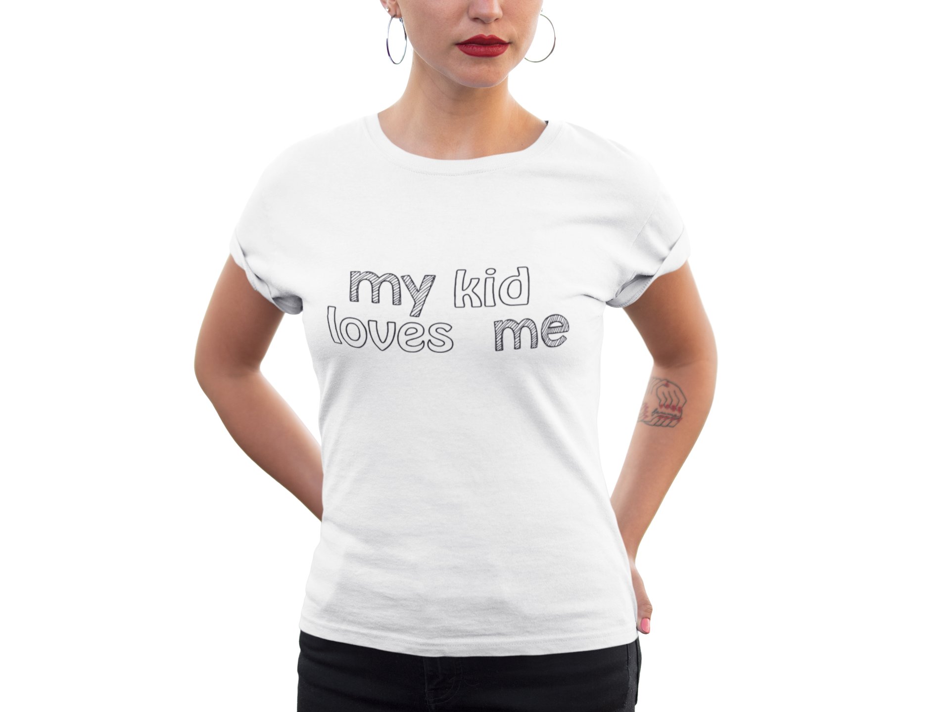 My kid loves me-printed family themed cotton blended half-sleeve t-shirts made for women (white)