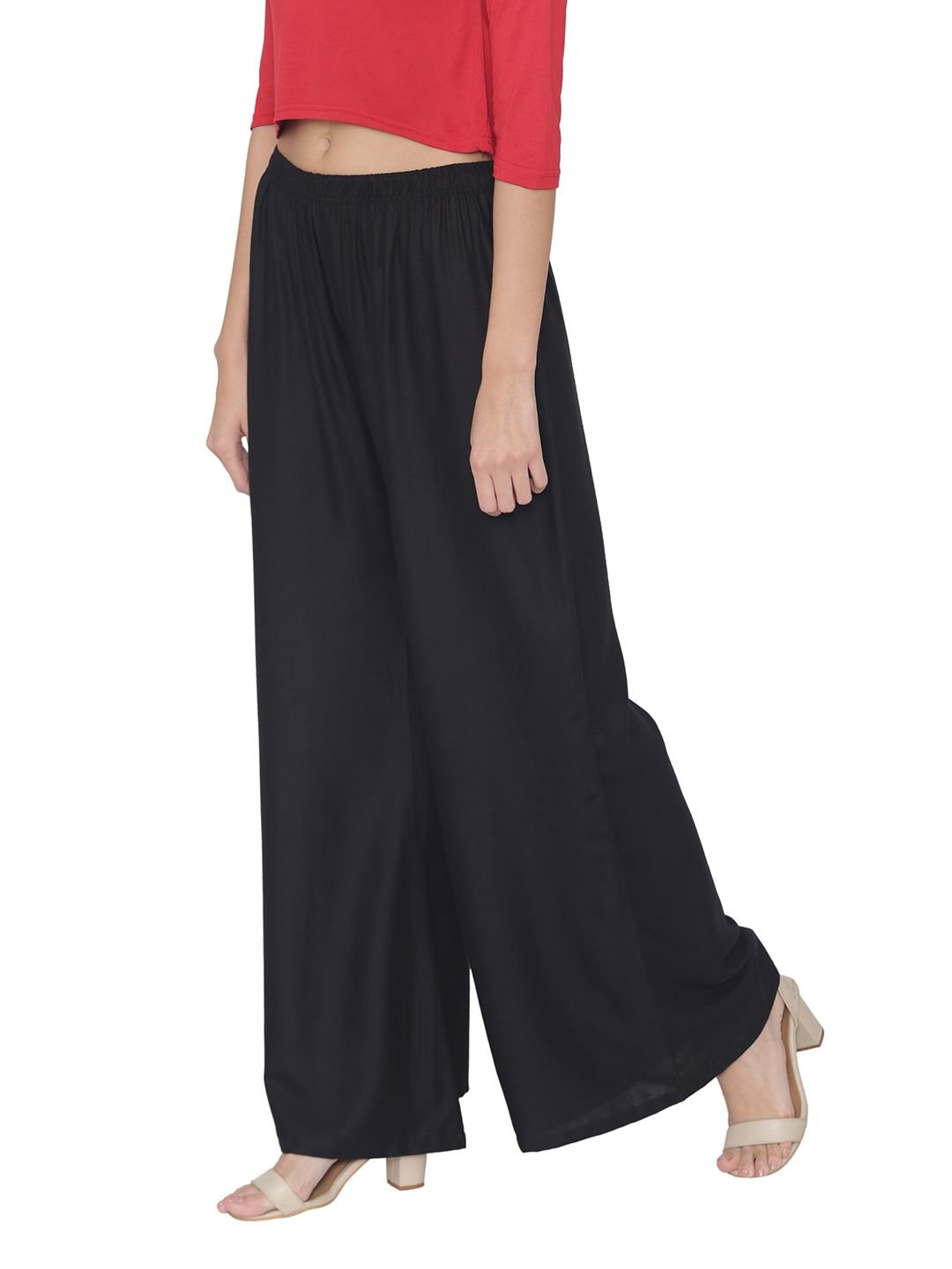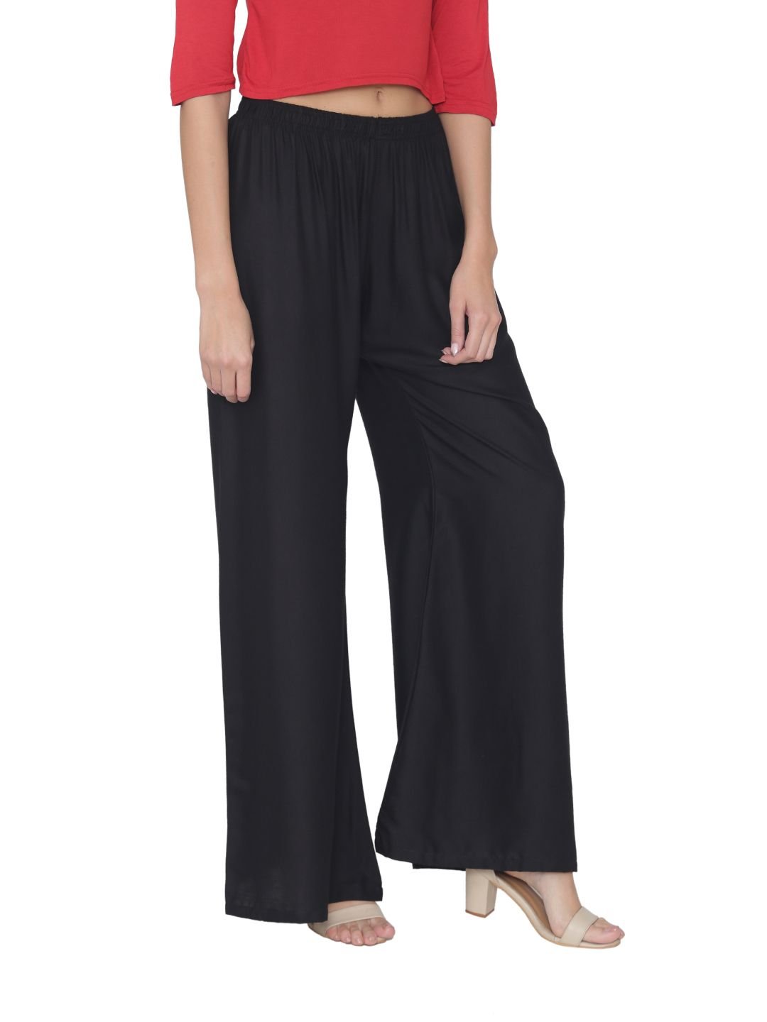 N-Gal Rayon Women's Wide Leg Elastic Waist Band Breathable Plain Palazzo Pant_Black