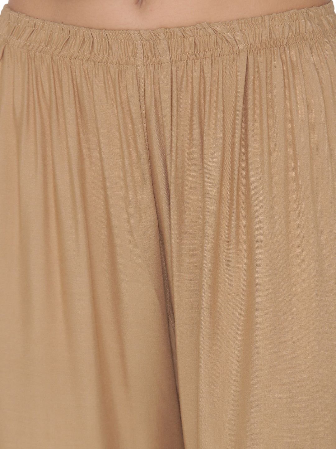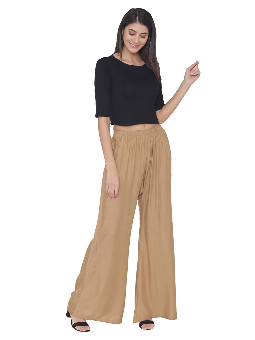 N-Gal Rayon Women's Wide Leg Elastic Waist Band Breathable Plain Palazzo Pant_Golden