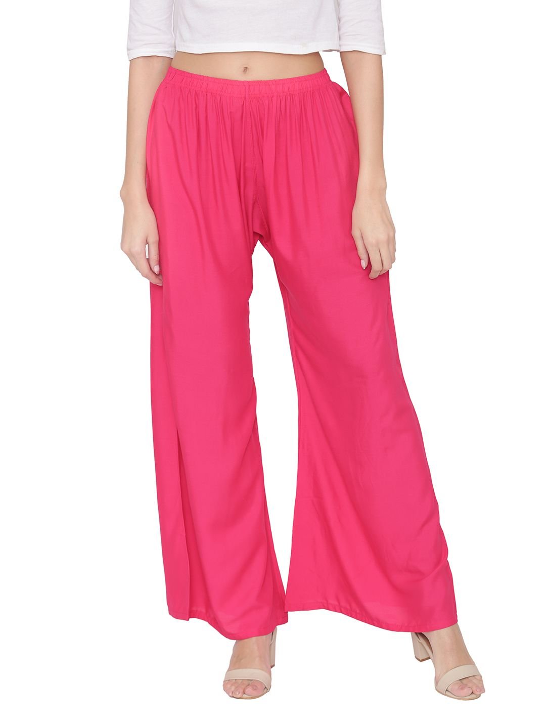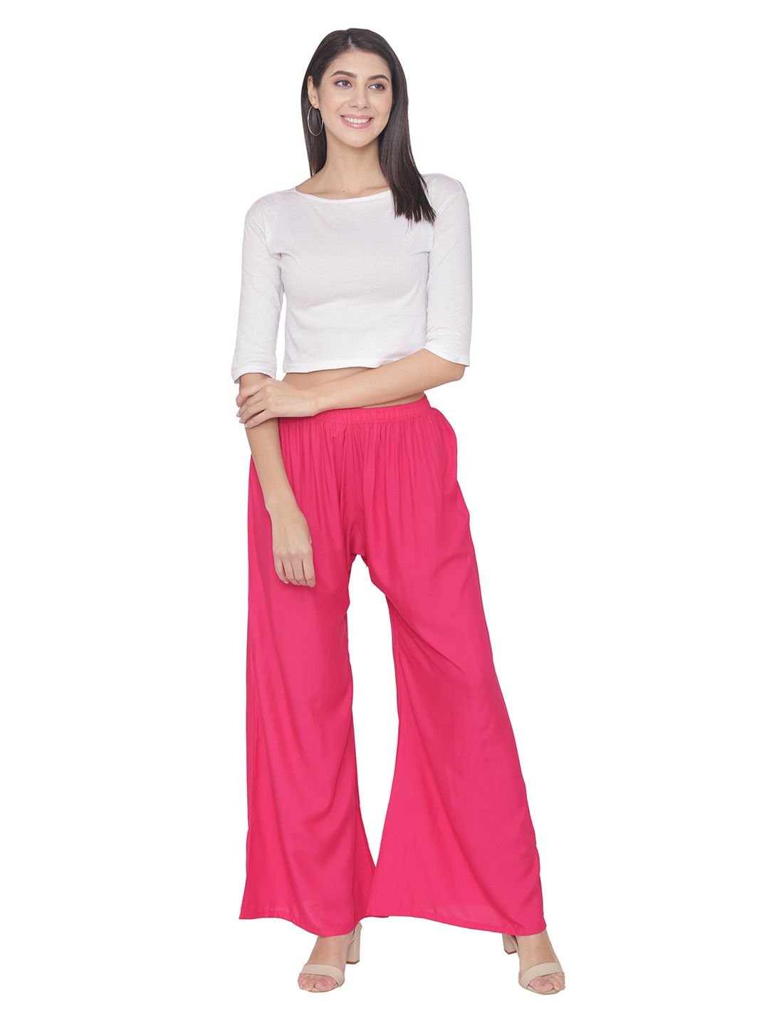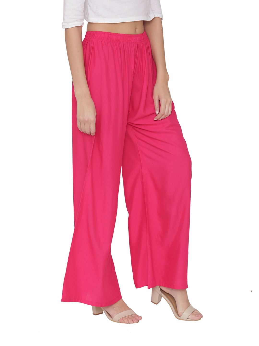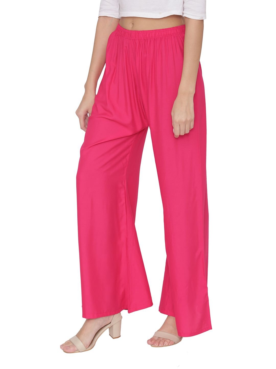N-Gal Rayon Women's Wide Leg Elastic Waist Band Breathable Plain Palazzo Pant_Magenta