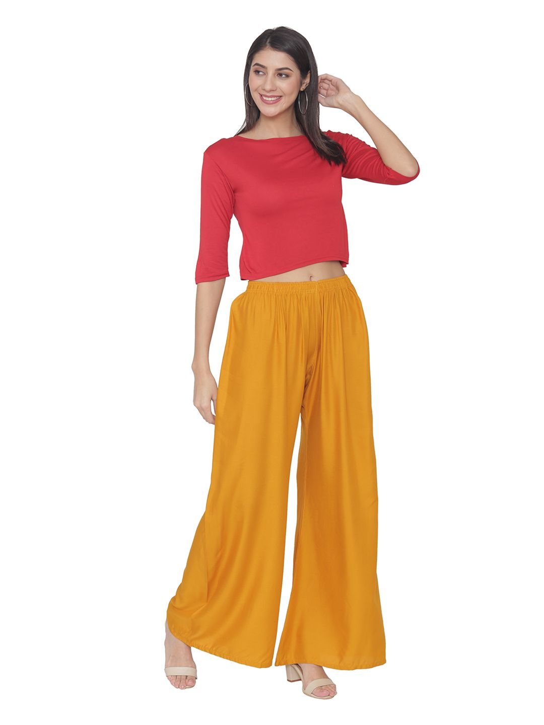 N-Gal Rayon Women's Wide Leg Elastic Waist Band Breathable Plain Palazzo Pant_Mustard