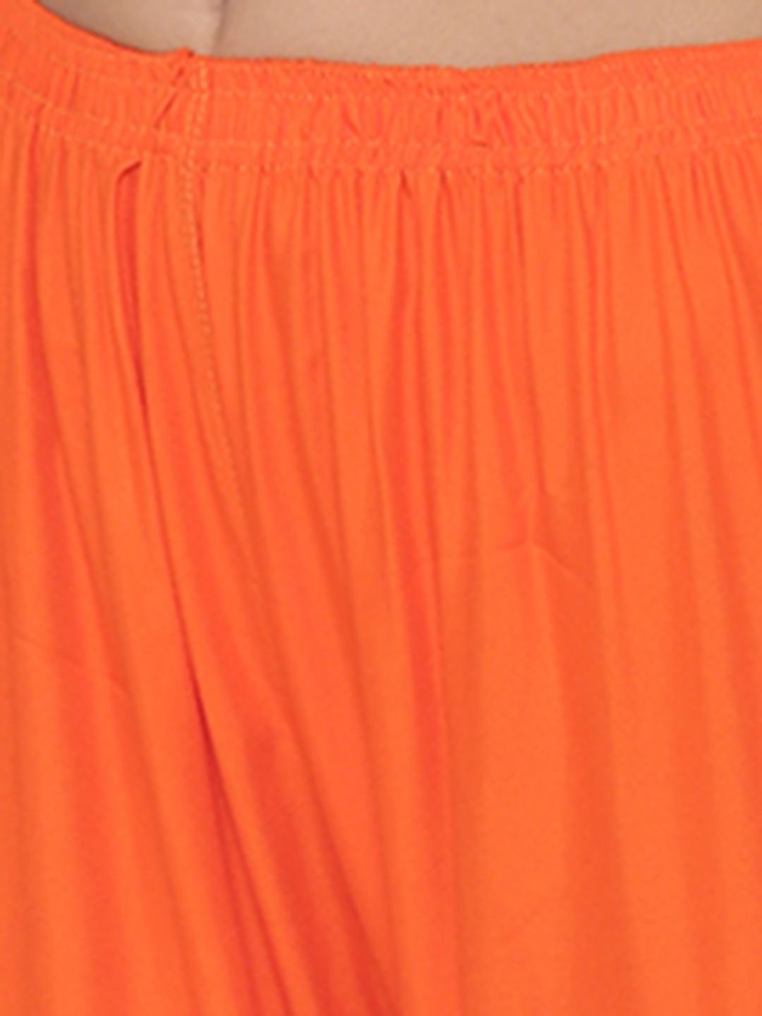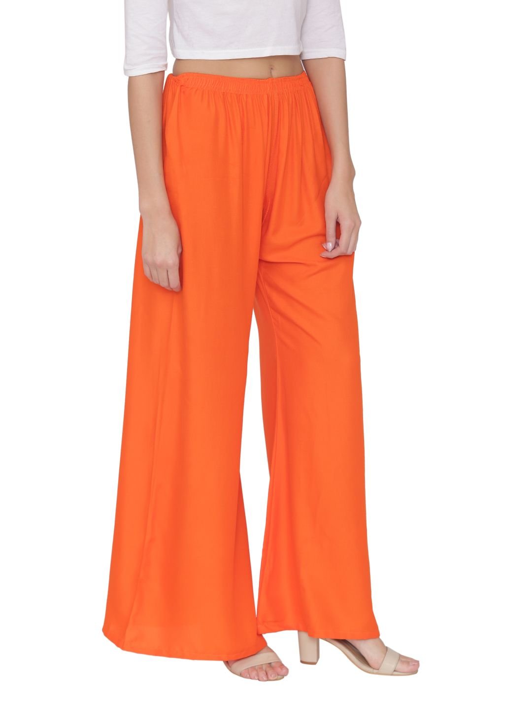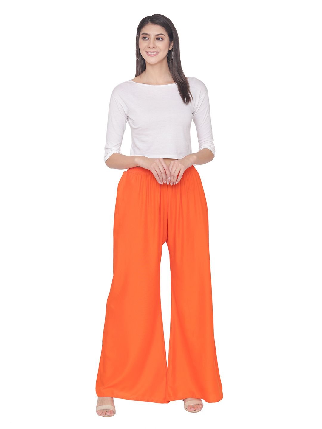 N-Gal Rayon Women's Wide Leg Elastic Waist Band Breathable Plain Palazzo Pant_Orange