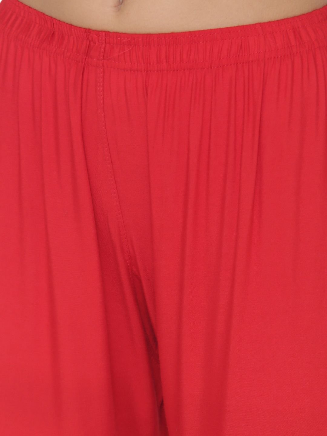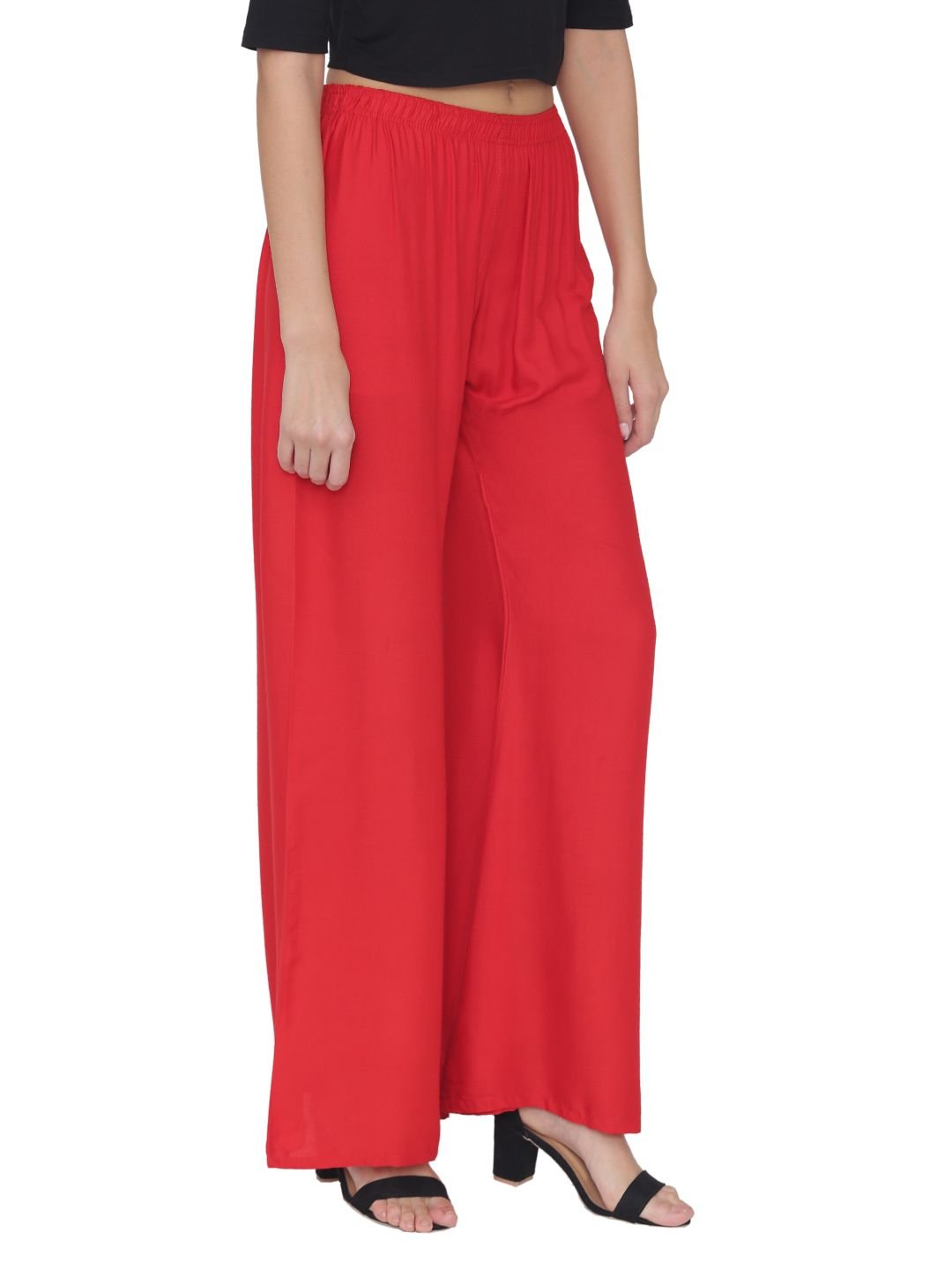 N-Gal Rayon Women's Wide Leg Elastic Waist Band Breathable Plain Palazzo Pant_Red