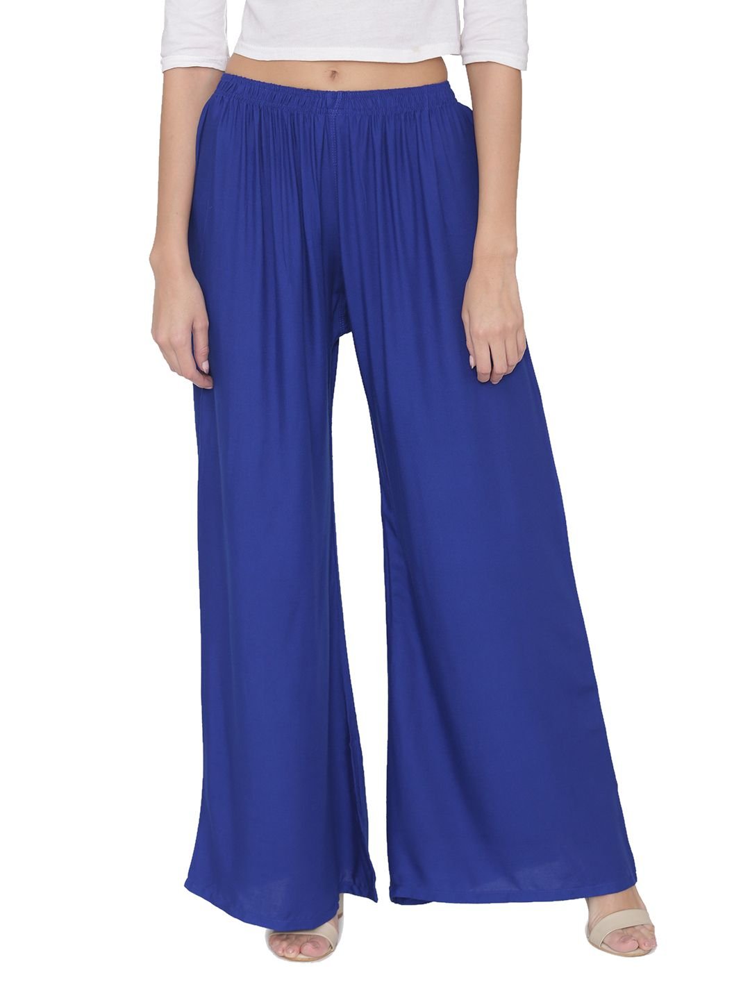 N-Gal Rayon Women's Wide Leg Elastic Waist Band Breathable Plain Palazzo Pant_RoyalBlue