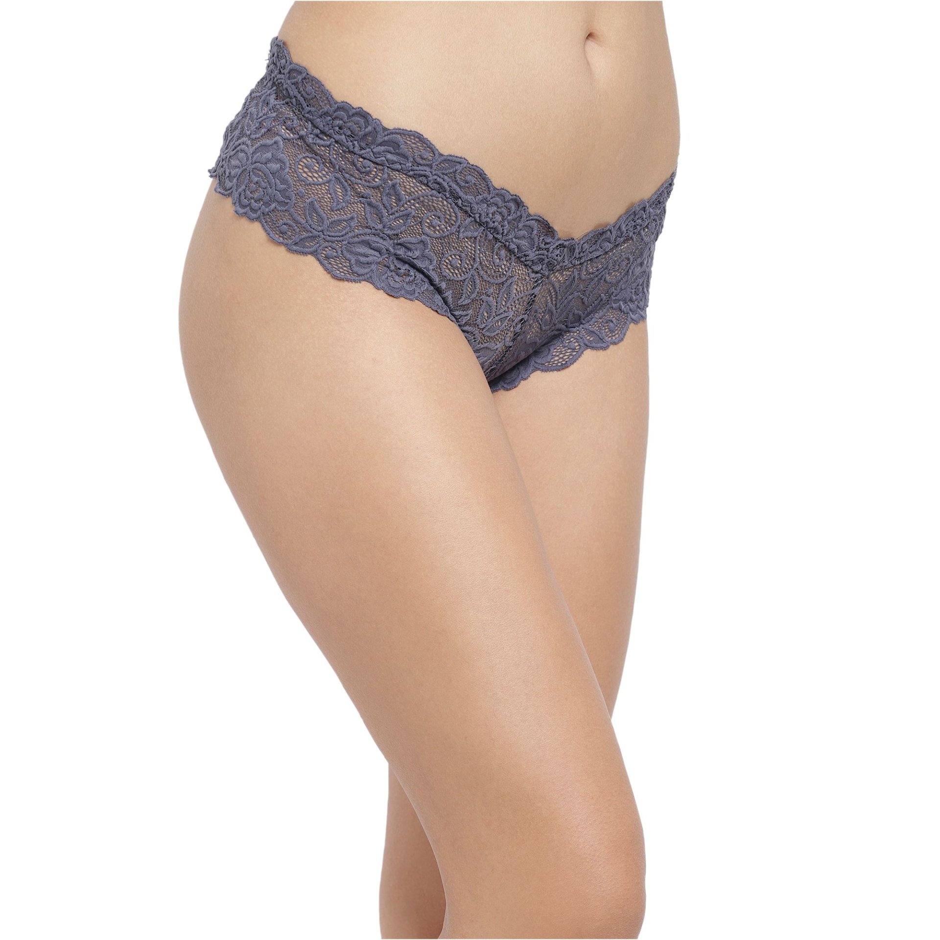 N-Gal Women's Cheeky Lace Mid Waist Floral Underwear Lingerie Brief Panty _NavyBlue