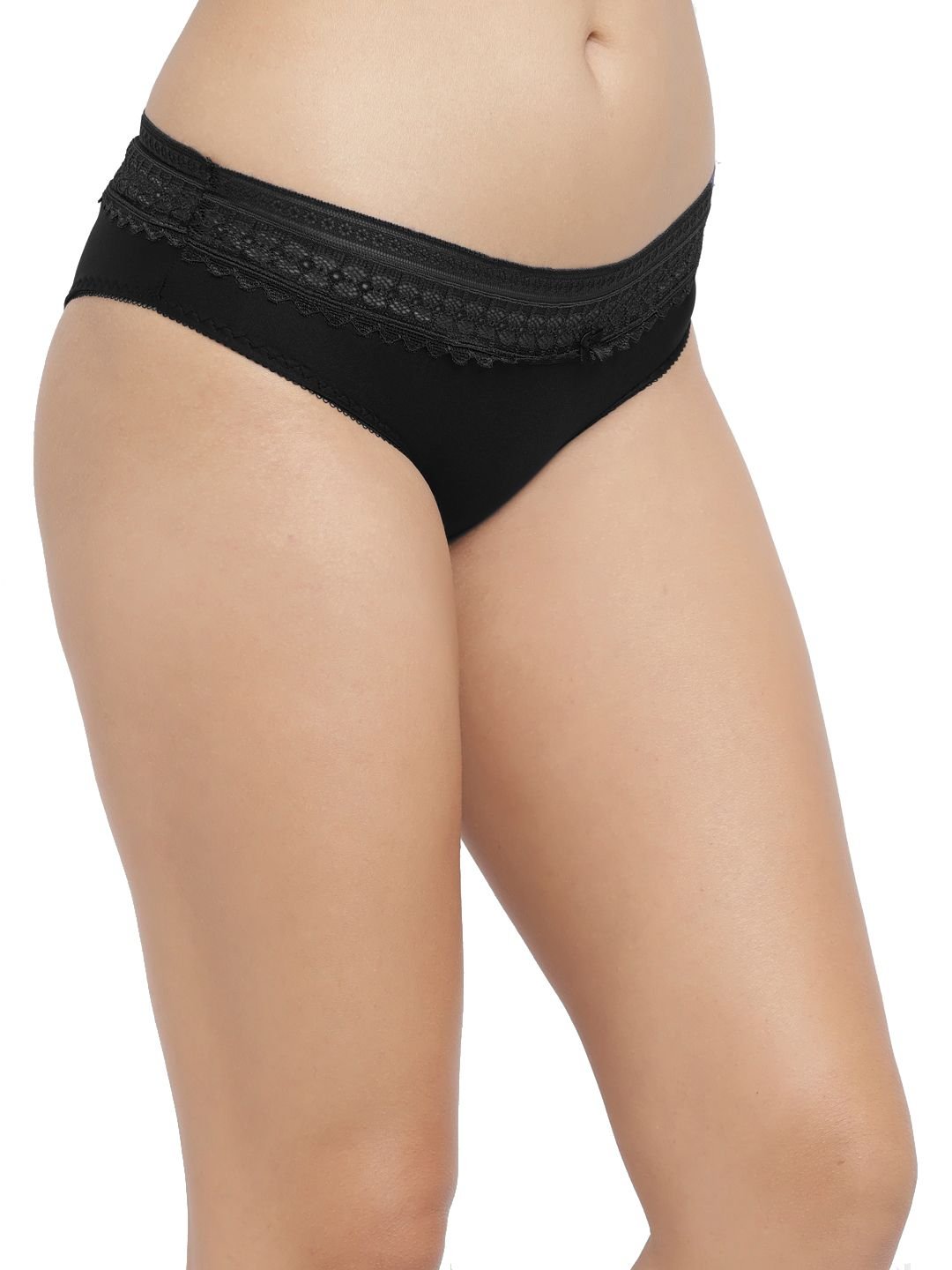 N-Gal Women's Floral Lace Edge Mid Waist Underwear Lingerie Brief Panty_Black