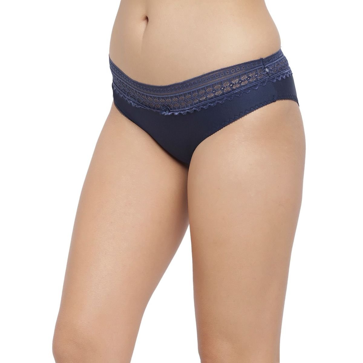 N-Gal Women's Floral Lace Edge Mid Waist Underwear Lingerie Brief Panty_NavyBlue