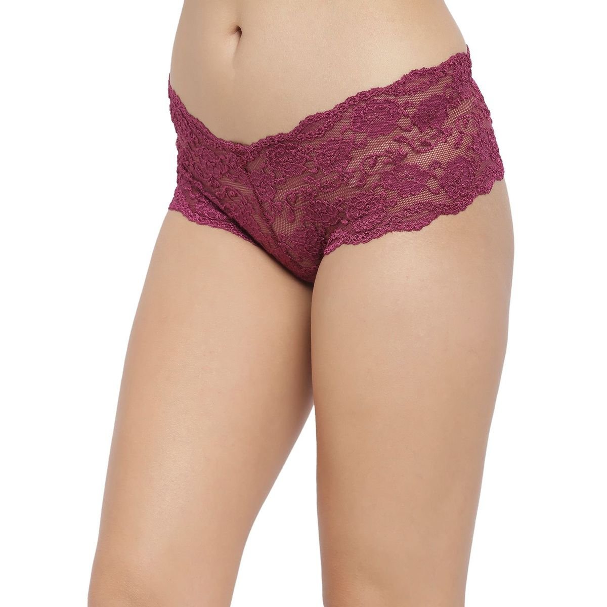 N-Gal Women's Floral Lace Mid Waist Criss Cross Back Underwear Lingerie Brief Panty _Purple