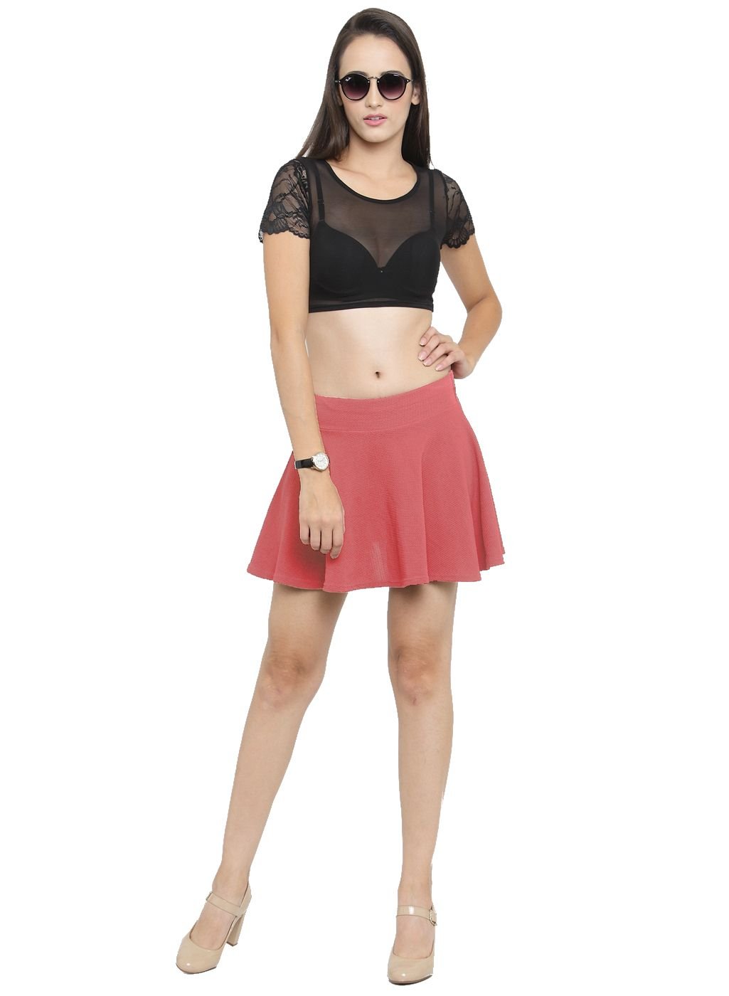 N-Gal Women's Polyester Lycra High Waist Flared Knit Skater Short Mini Skirt _Peach