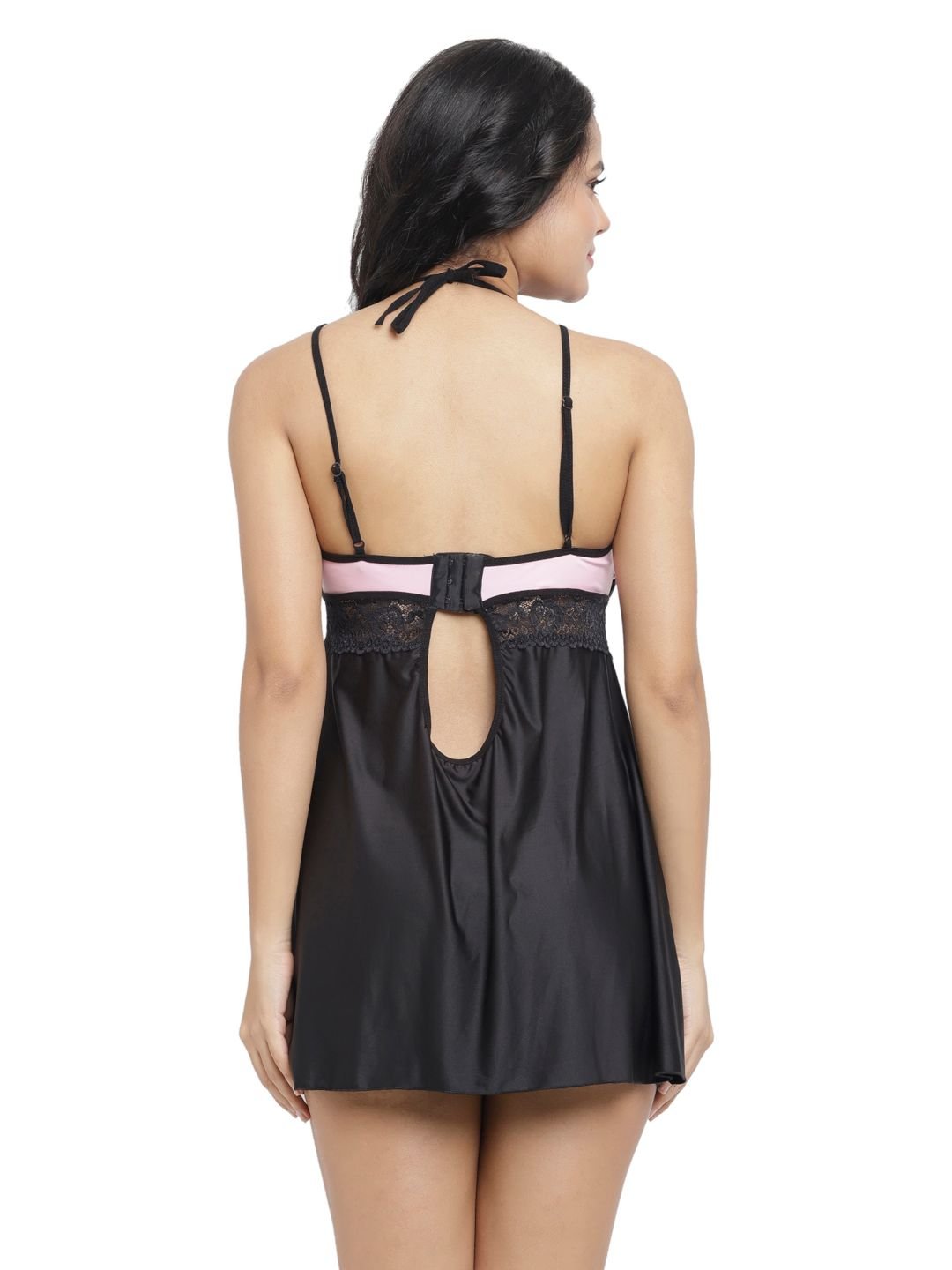 Made of Satin polyester and Lace, this beautiful piece of nightwear from N-gal will make your nights special and peaceful. The smooth fabric finish sliding against your skin makes you very comfortable and the beautiful design which is unique in style makes you look more feminine and appealing.