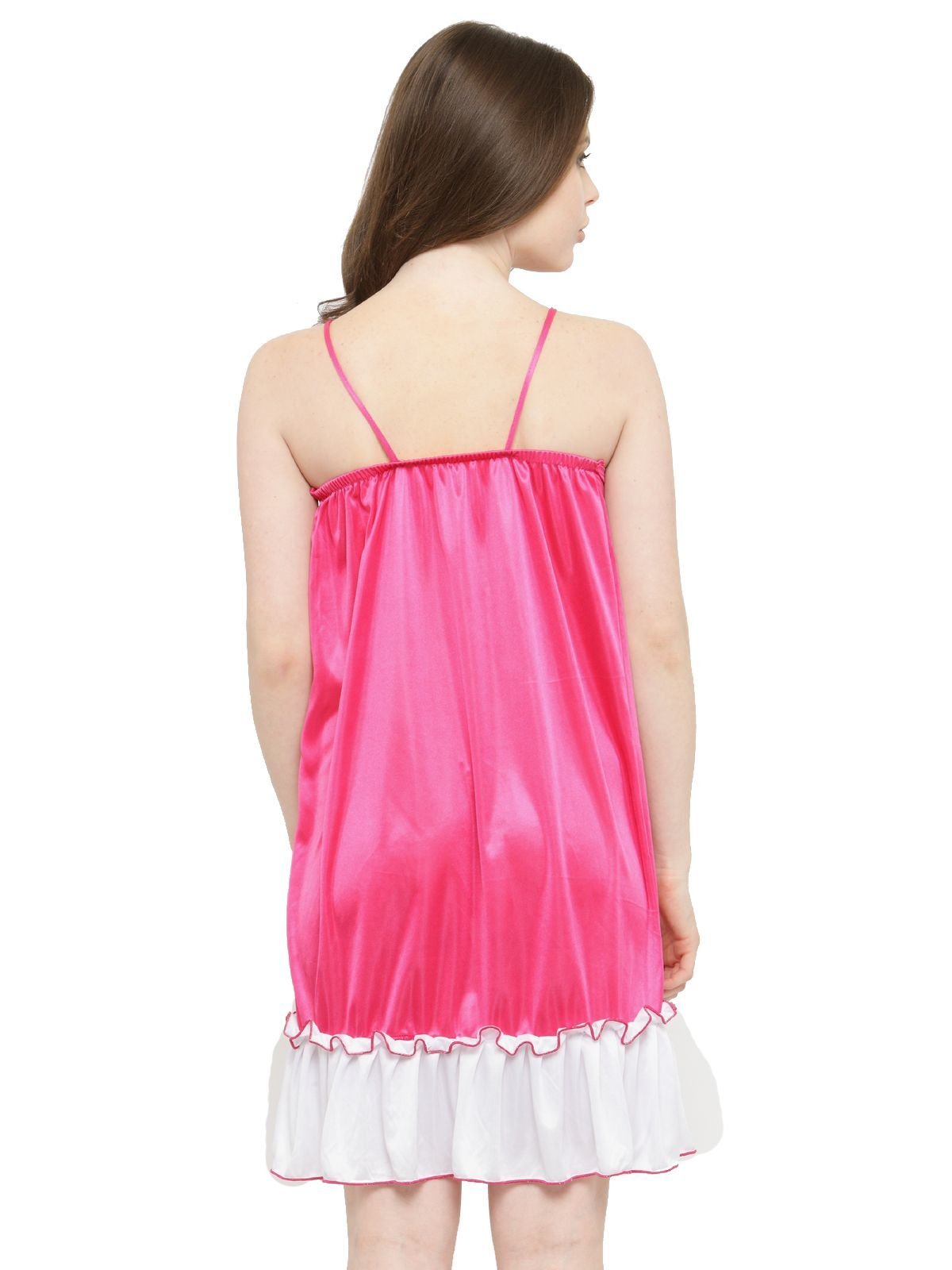 N-Gal Women's Satin Lace Cup Ruffle Edge Babydoll Dress Nightwear_Pink