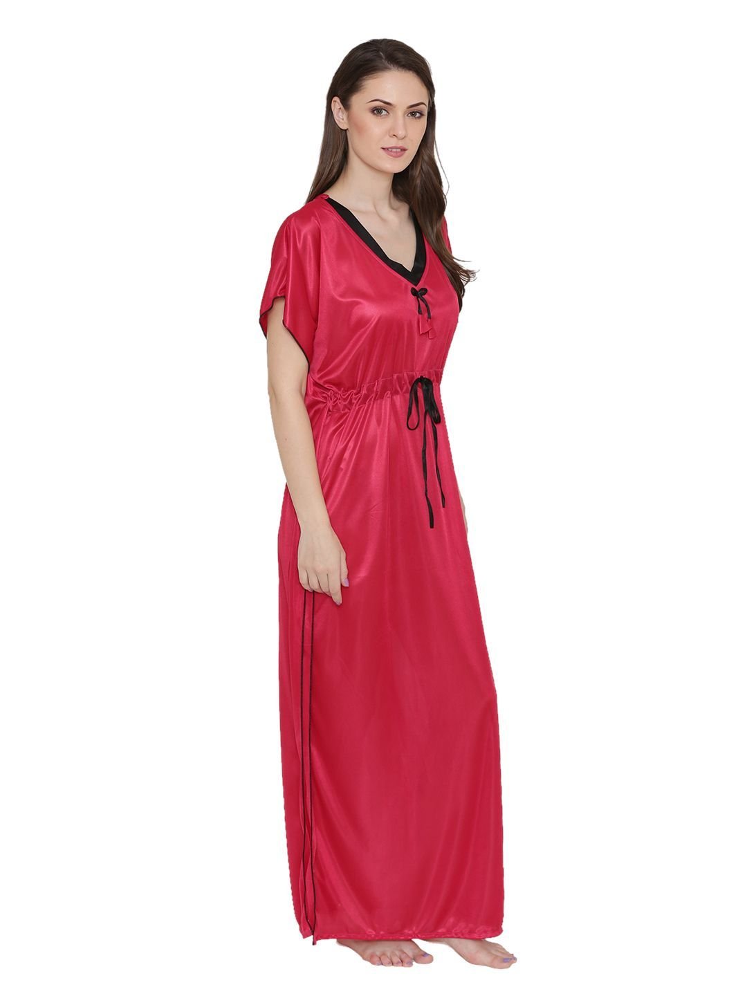 N-Gal Women's Satin Nighty Night Dress Nightwear with G,String_Red