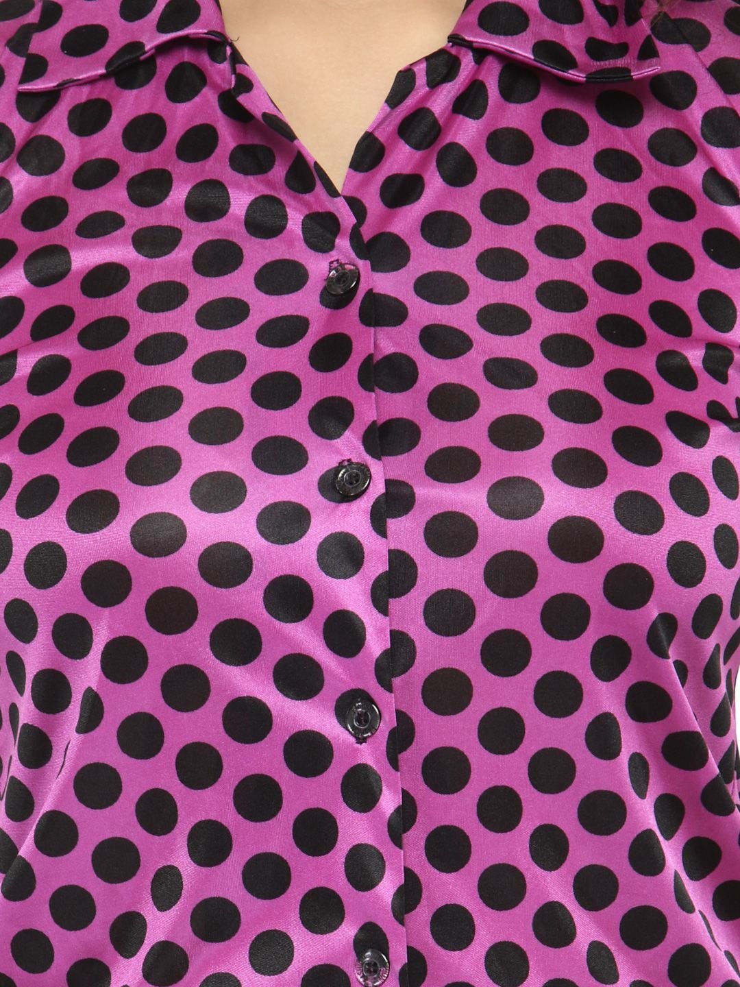 N-Gal Women's Satin Polka Dot Print Short Sleeves Shirt & Short Nightwear Lounge Sets_Purple