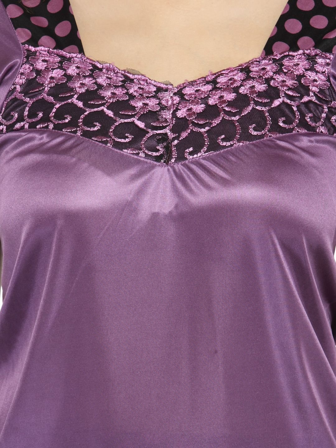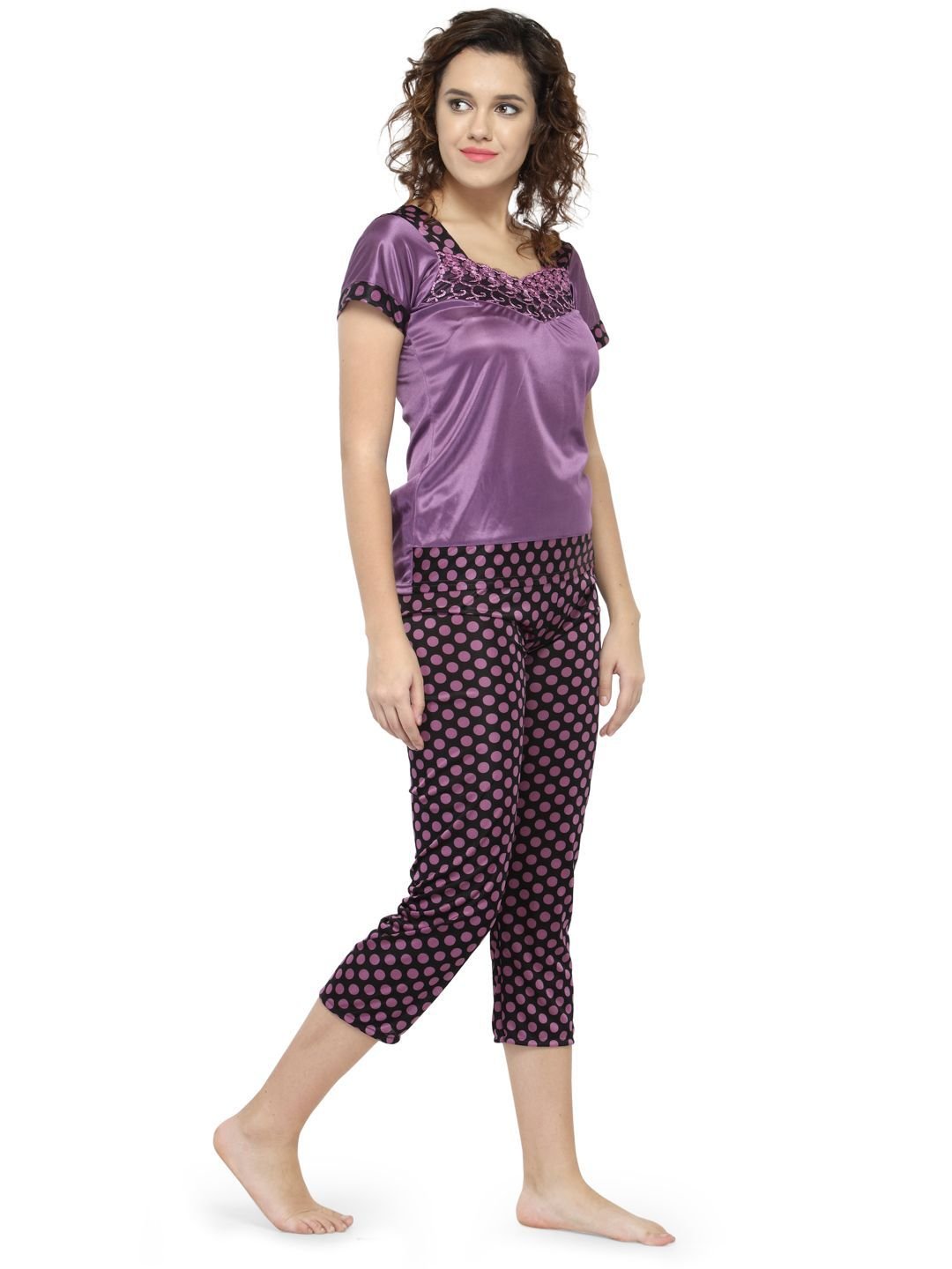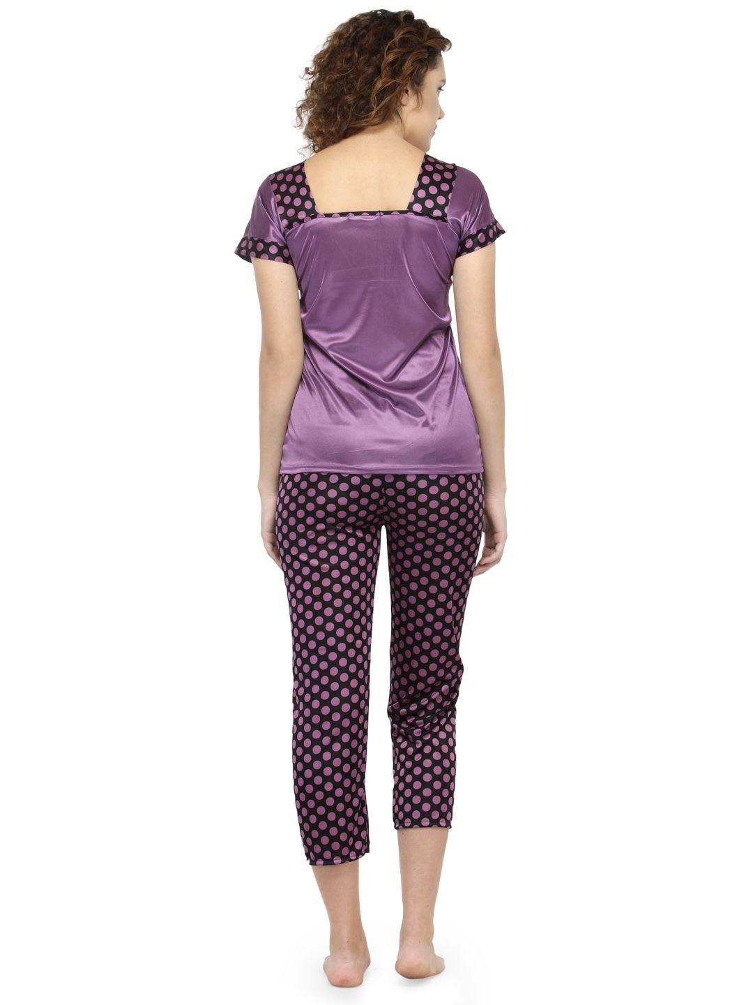 N-Gal Women's Satin Short Sleeves Polka Dot Print Top Pyjama Set Nightwear Nightsuit_Purple