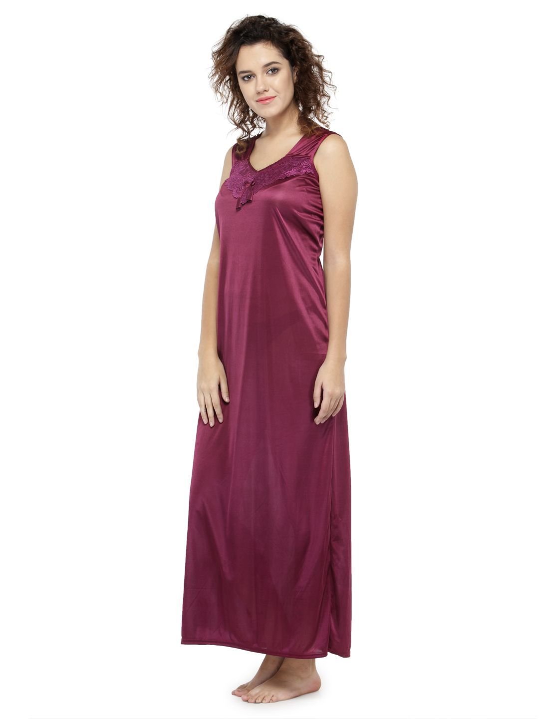 Designed to keep you comfortable while sleeping, this night dress is a must-have. With short sleeves and a soft material, it is sure to become your choicest.his Satin nighty has a frilled scoop neckline with laced details. This Satin nighty is a combination of comfort and luxury . This nightwear is an ideal choice for you, especially if you seek relaxation at night.