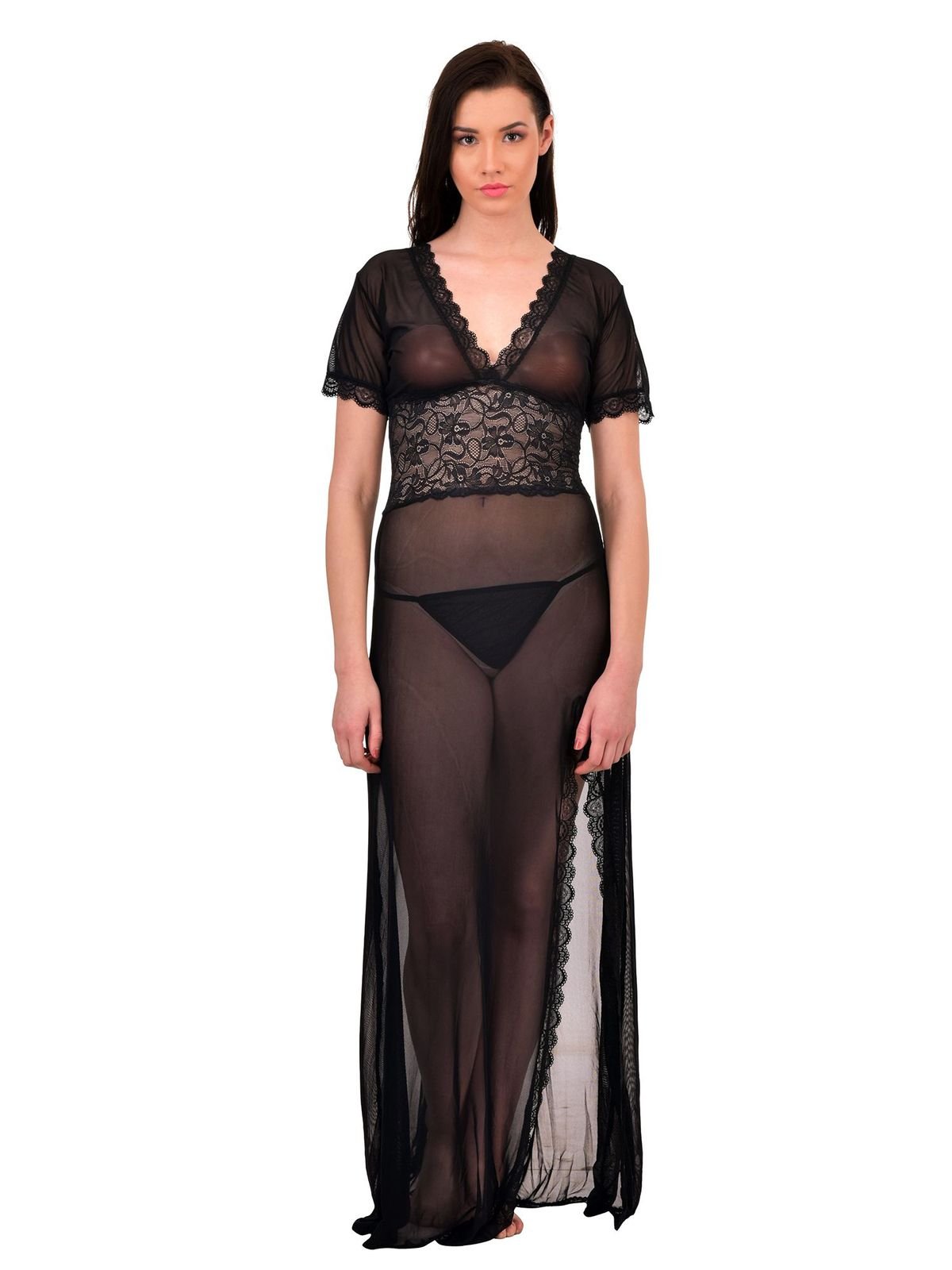 For a well-planned night, this gown is very lovely to make your intimate lover cheer up for your alluring silhouette. this mesh gown with lace detail waistline enhancing you a curve, scalloped lace V-neck on both front and back, flirty split to the thigh and thong matched. Mesh Nightgown Highly Comfortable Includes: Nightgown, G-String