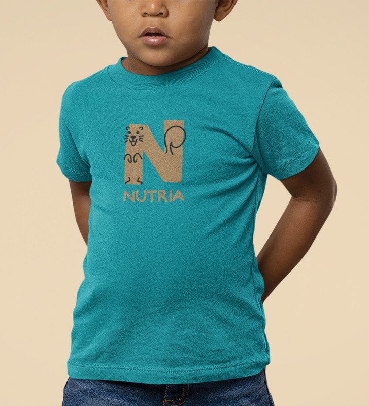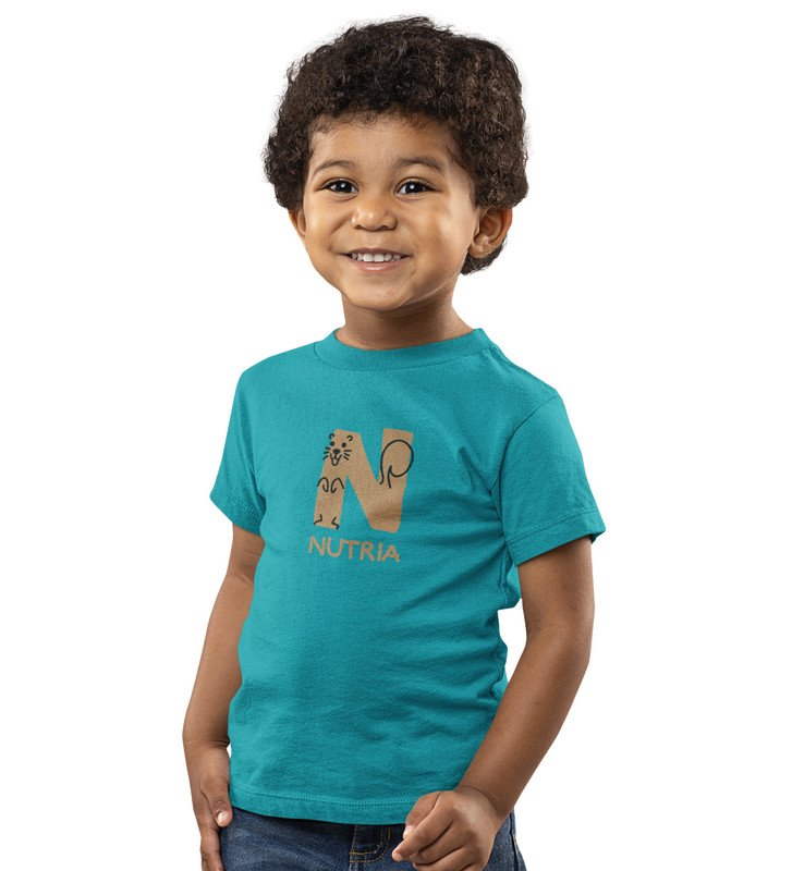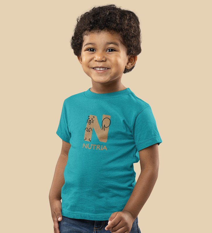 Naughty Nutria, Boys Round Neck Blended Cotton Tshirt (Teal)