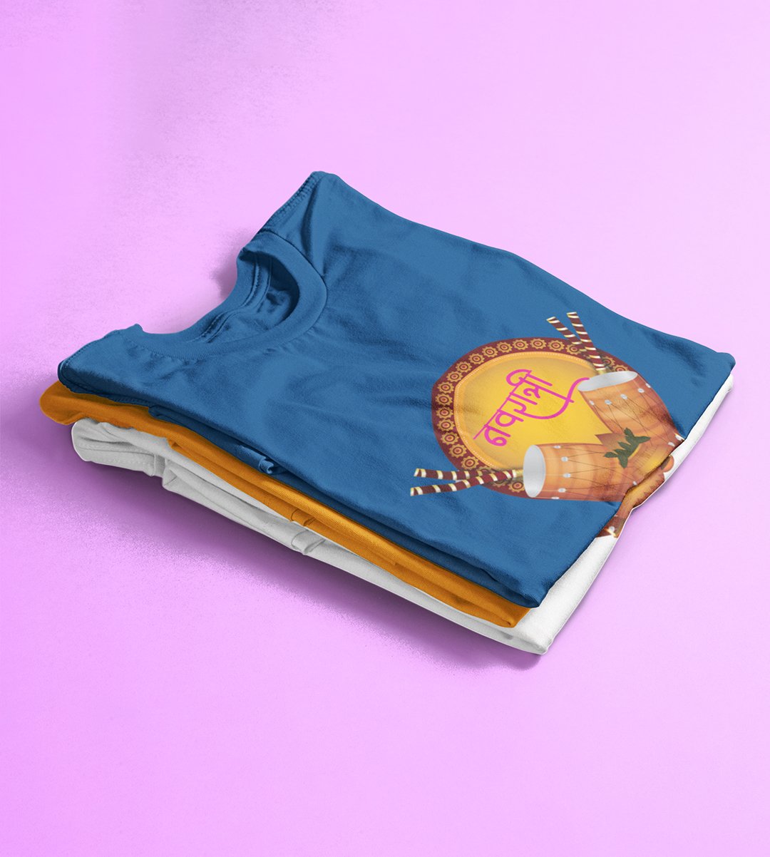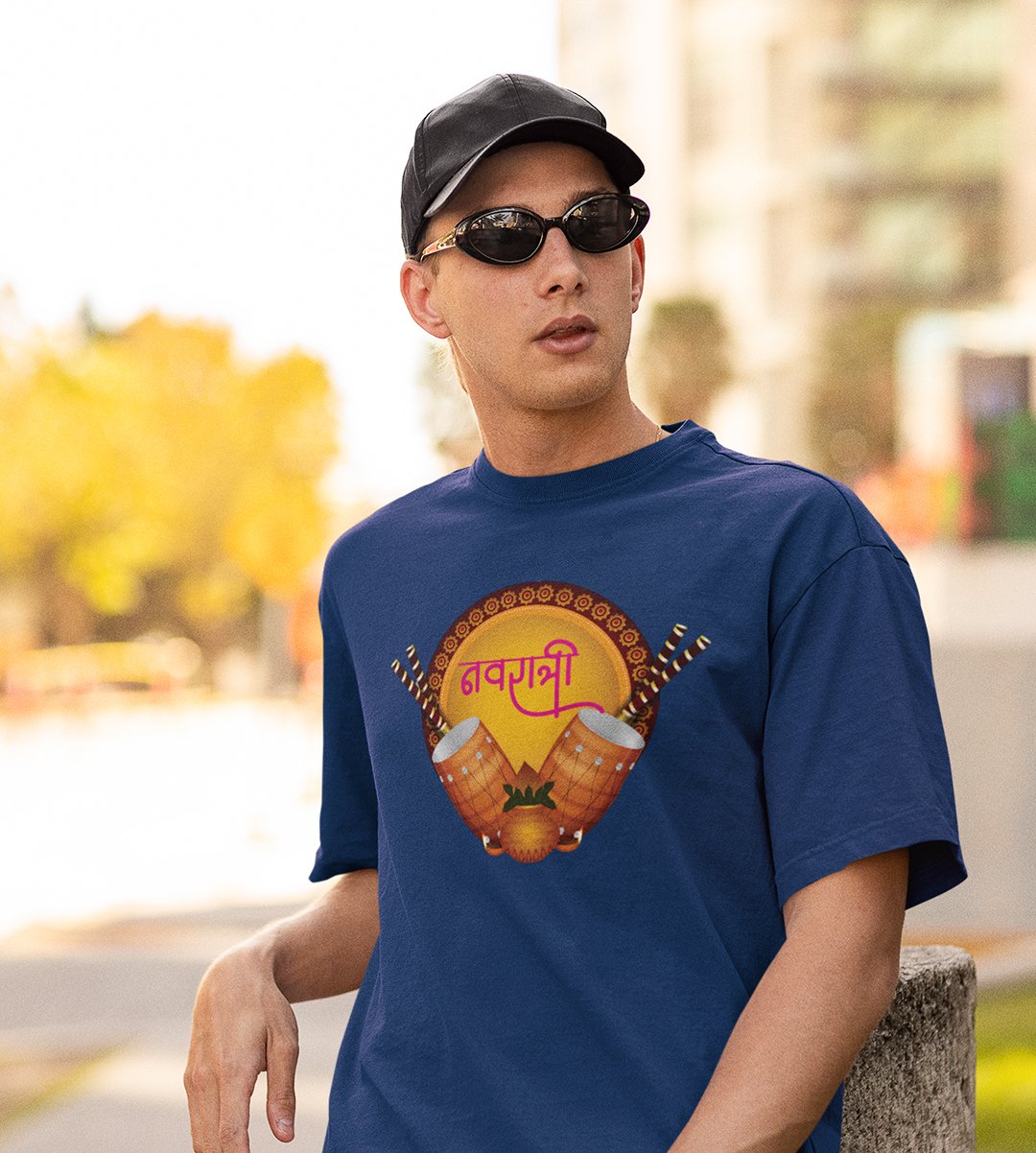 Navratri is a very auspicious festival for hindus. It takes place at the beginning of October and sometimes September. Enjoy the 9 days of festivities with full zeal and make yourself submerged in the love of Maa Durga. Navratri is also known as Durga Puja. And with this Tees, you can shine like a star during this festive season with our navratri themed cotton half sleeved Tshirts. You can pair our t-shirts with trousers and denim of your choice and make it a weekday smart casual or weekend wear. This is durable. This tshirt is smooth and soft which makes you comfortable to wear during all seasons. The printing in it is durable and odourless. It has five sizes, S,M,L,XL,XXL. The Tshirt colour is intact even after repeated washes. It can be kept in your wardrobe and hangers. Please avoid washing mashine to clean this Tee, it may affect the print. Hand wash only. We have brought you many navratri related designs printed on our different colour Tshirts to choose from. Grab it now.