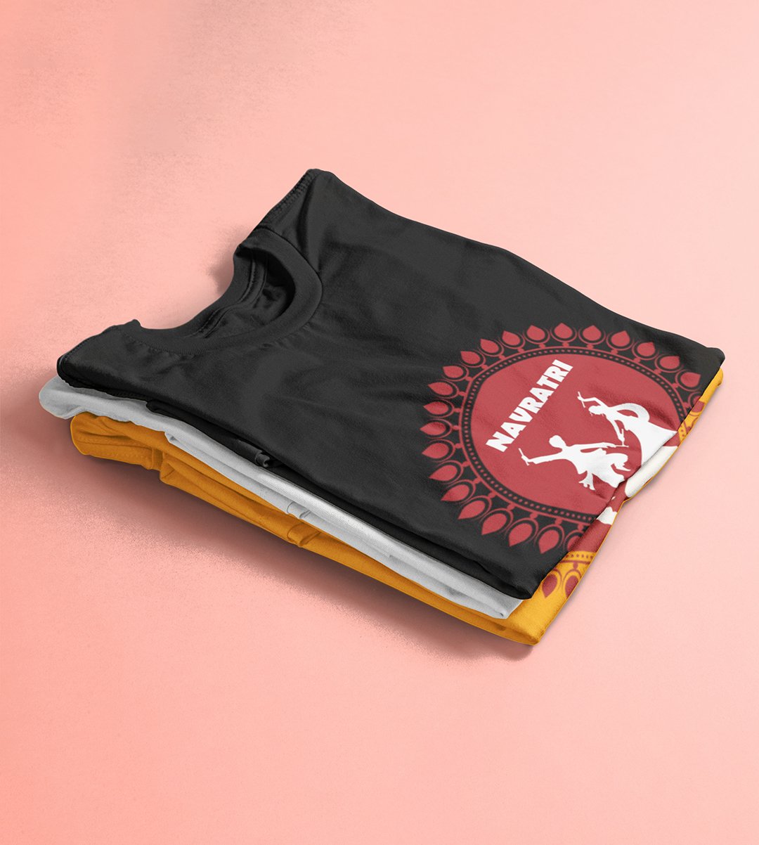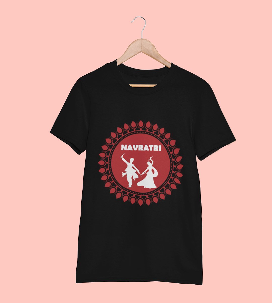 Navratri is a very auspicious festival for hindus. It takes place at the beginning of October and sometimes September. Enjoy the 9 days of festivities with full zeal and make yourself submerged in the love of Maa Durga. Navratri is also known as Durga Puja. And with this Tees, you can shine like a star during this festive season with our navratri themed cotton half sleeved Tshirts. You can pair our t-shirts with trousers and denim of your choice and make it a weekday smart casual or weekend wear. This is durable. This tshirt is smooth and soft which makes you comfortable to wear during all seasons. The printing in it is durable and odourless. It has five sizes, S,M,L,XL,XXL. The Tshirt colour is intact even after repeated washes. It can be kept in your wardrobe and hangers. Please avoid washing mashine to clean this Tee, it may affect the print. Hand wash only. We have brought you many navratri related designs printed on our different colour Tshirts to choose from. Grab it now.