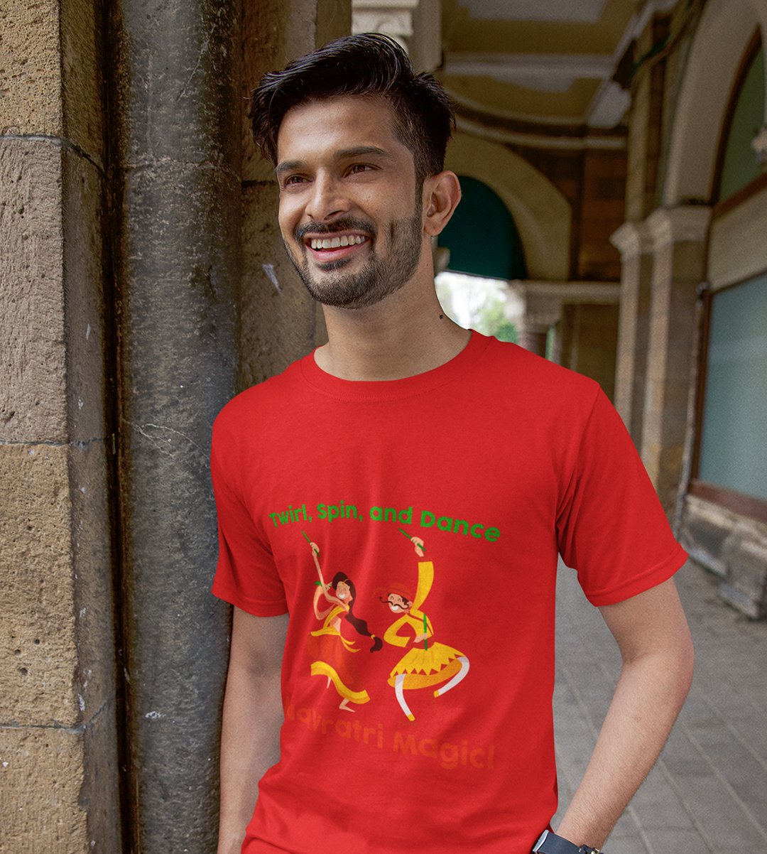 Navratri Magic printed unisex adults round neck cotton half-sleeve red tshirt specially for Navratri festival/ Durga puja