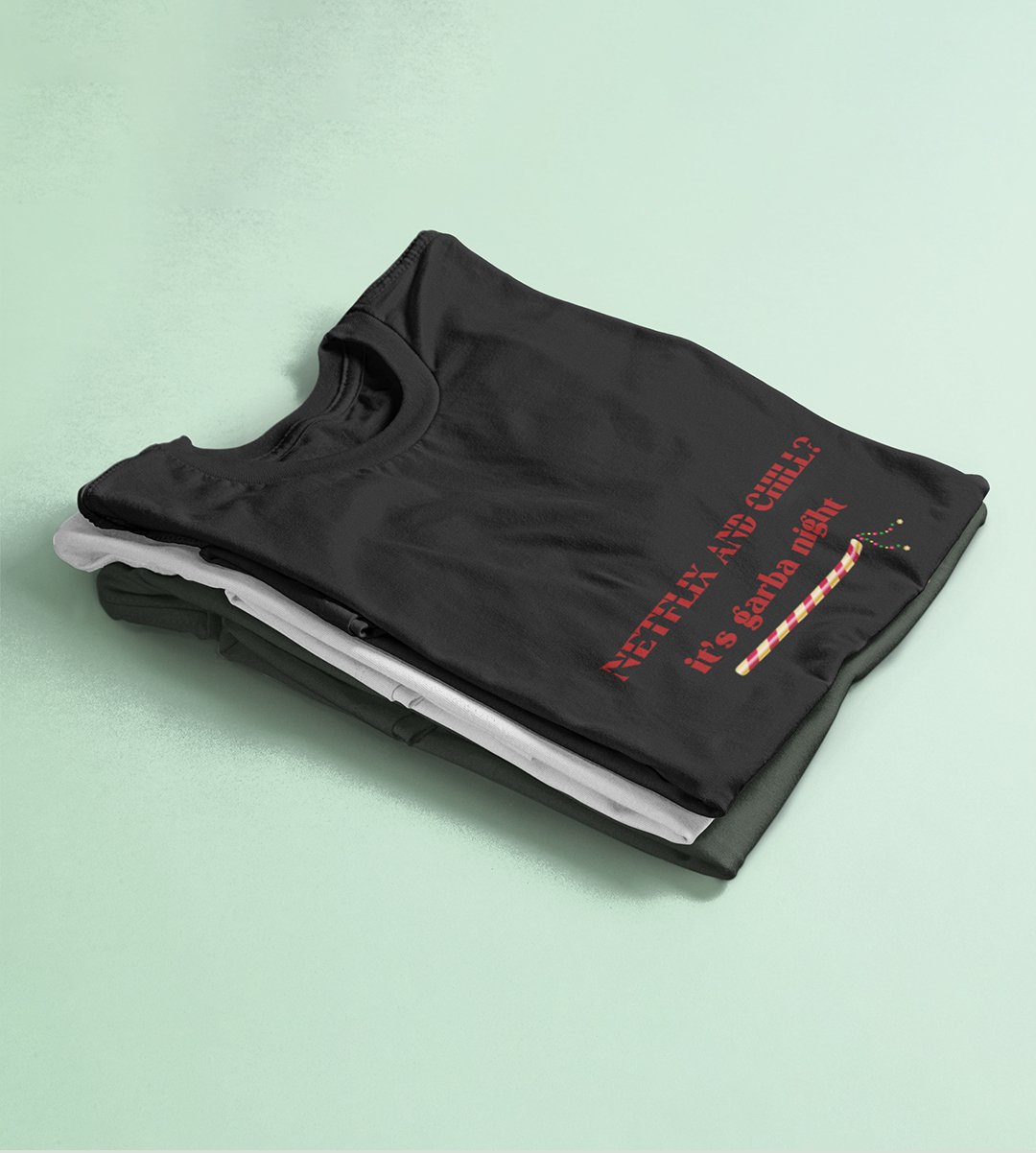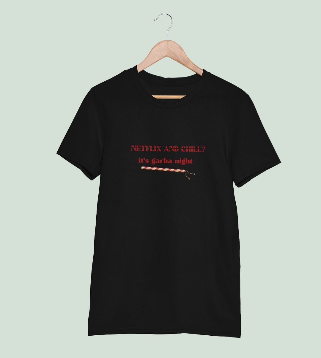 Netflix and chill printed unisex adults round neck cotton half-sleeve black tshirt specially for Navratri festival/ Durga puja