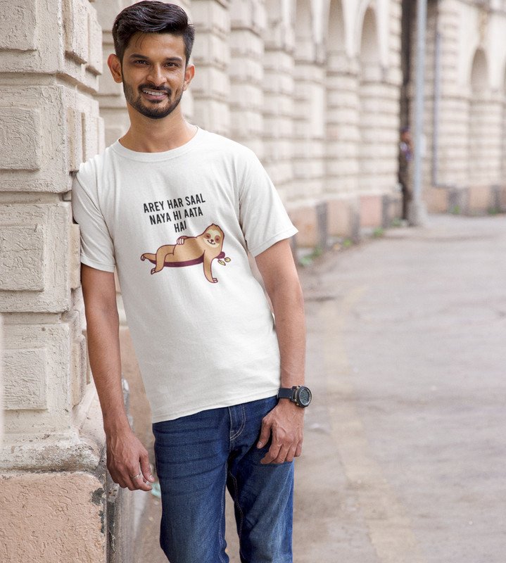 New Year Always Comes White New Year Printed T-shirt For Mens
