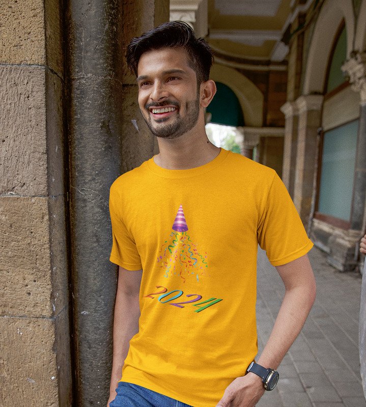 New year Bells Yellow Men's Printed T-shirt For Mens Boys