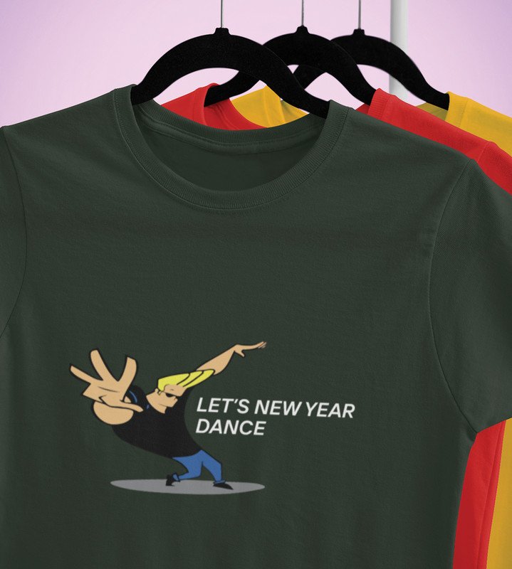 New Year Dance Green Printed T-shirt For Mens On New Year Theme Best Gift For New Year