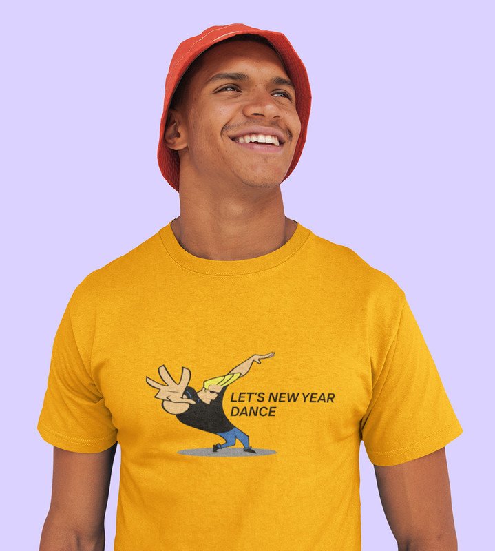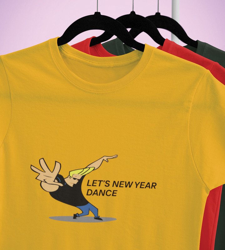 New Year Dance Yellow Printed T-shirt For Mens On New Year Theme Best Gift For New Year