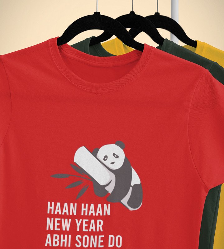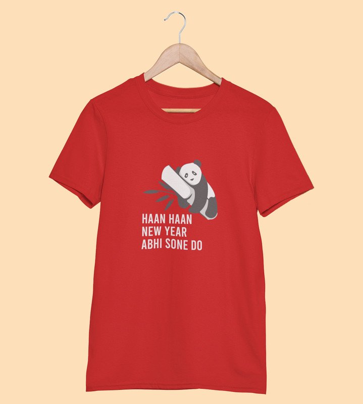 New Year Feast Red Graphic Printed T-shirt For Mens Boys
