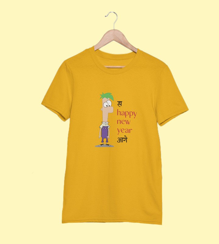 New Year Has Come Yellow New Year Printed T-shirt For Mens
