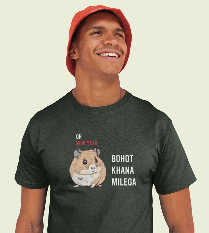 New Year More Food Green Printed T-shirt For Mens On New Year Theme Best Gift For New Year