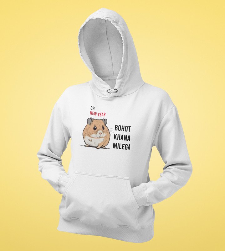 New Year More Food, White Printed Hoodies For Mens On New Year Theme Best Gift For New Year