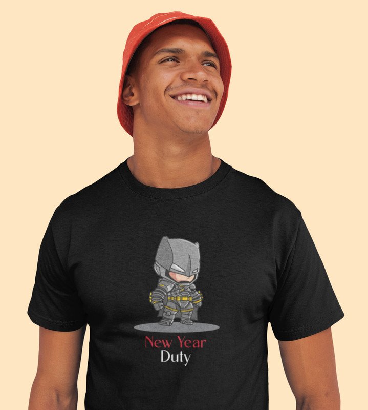 New Year New Duty Black Printed T-shirt For Mens On New Year Theme Best Gift For New Year