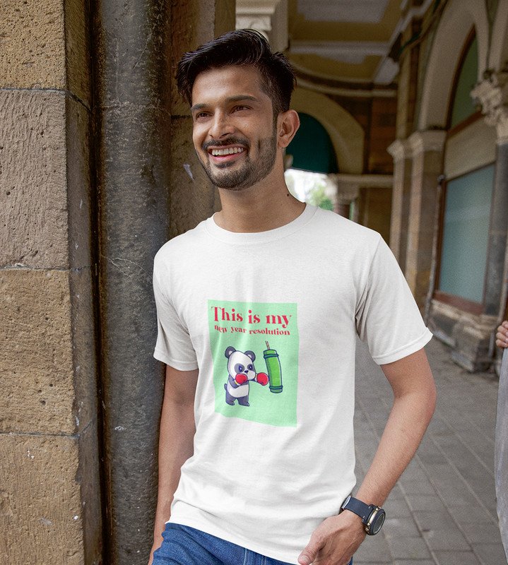 New Year New Resolution White Men Printed T-shirt For Mens Boys