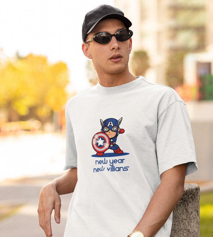 New Year New Villans White Men Printed T-shirt For Mens Boys
